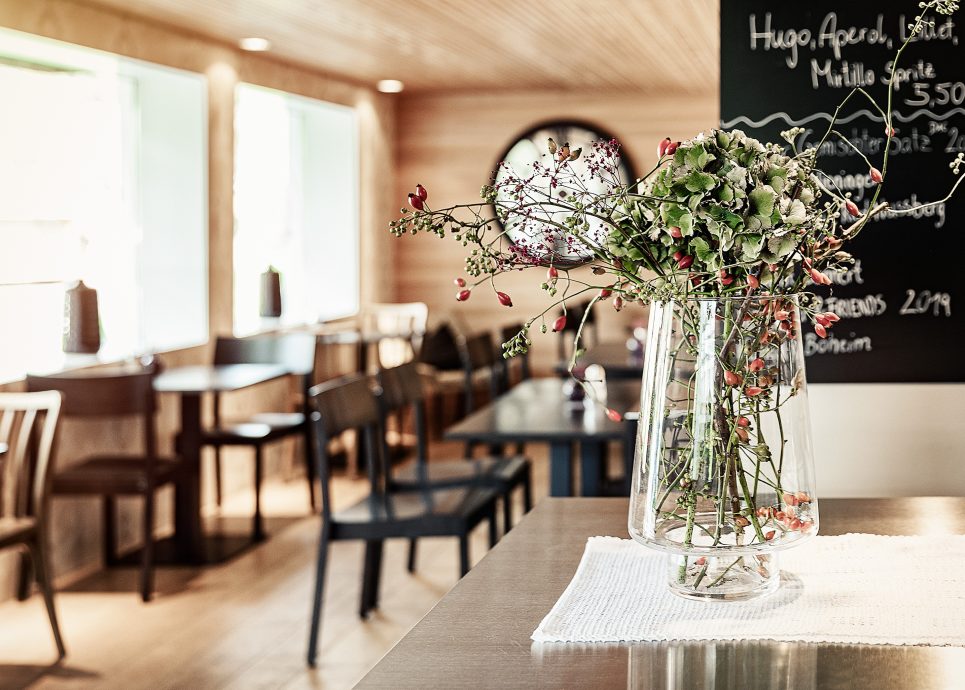 Schwarzenberg wäre nicht Schwarzenberg, läge es nicht als historisch wichtiger Knotenpunkt auf der Nord-Süd-Handelsroute der Alpen. Seit Jahrhunderten ein umtriebiges Dorf, geprägt von stattlichen Gasthöfen, der barocken Kirche und den satten Wiesen dazwischen, wird es aufgeladen durch erneuerungsfreudige Wirte und die Schubertiade, das internationale Klassik- Festival. Es ist nicht nur Heimatort von Angelika Kauffmanns Vater, der renommierten Malerin des Klassizismus und Muse vieler berühmter Zeitgenossen, sondern auch von Gabi Innfeld, der Wirtin im Café Angelikahöhe. Seit kurzem hat sie das Zepter an die jüngere Generation weiter gereicht.