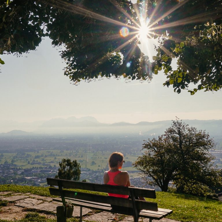 Schon von weitem sieht man die zwei Türme der barocken Basilika, der Wallfahrtskirche des Dorfes Bildstein, sie thront erhaben über dem Rheintal. Der Wallfahrtsort wurde 1519 mit dem Bau eines kleinen Bildstocks für eine Madonnen-Figur gegründet. Die Kirche wurde 2017 renoviert und am 7. Oktober 2018 wurde sie feierlich zur Basilika erhoben. Die Aussicht über das gesamte Rheintal und den Bodensee ist beeindruckend. Einige Pilger-Wanderwege führen hinauf zur Basilika – ganz nach dem Motto „Füße im Staub, Kopf in den Wolken“…