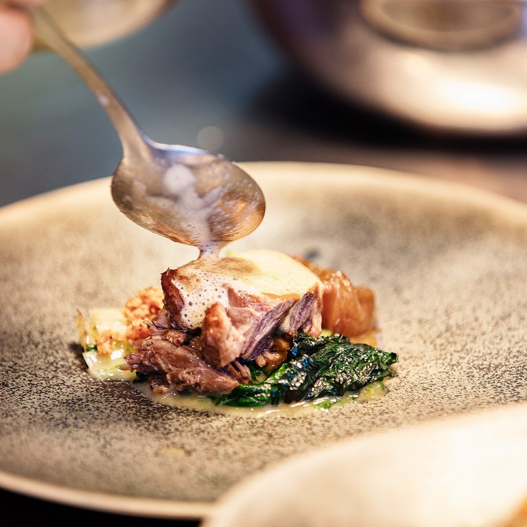 Mit der Gebäudesanierung von Marte.Marte Architekten im Jahr 2017 wird die Bühne frei für neue und mutige Ideen, für Dominic Mayer. Mit ihm kommt ein Konzept auf den Tisch, das ohne erstklassige Produkte nicht funktionieren würde. Der Jungkoch will nämlich alles von einem Lebensmittel verwerten, von der Blüte bis zur Wurzel, „from nose to tail“. Aus diesem Reichtum kreiert er Gerichte, die aus dem Repertoire unserer Gasthausküchen mehr und mehr zu verschwinden drohen. Ganz einfach deshalb, weil sie zu viel Arbeit machen und weil sie ein besonderes Know-how verlangen. Wer ein ganzes Tier kauft, muss es zu zerlegen wissen, von Anatomie eine Ahnung haben. Von wildwachsenden Kräutern kennt er die Kraft der Wurzeln und die Zeit der Reife, den Stengel des Mangolds weiß er anders zu handhaben als das Blatt.