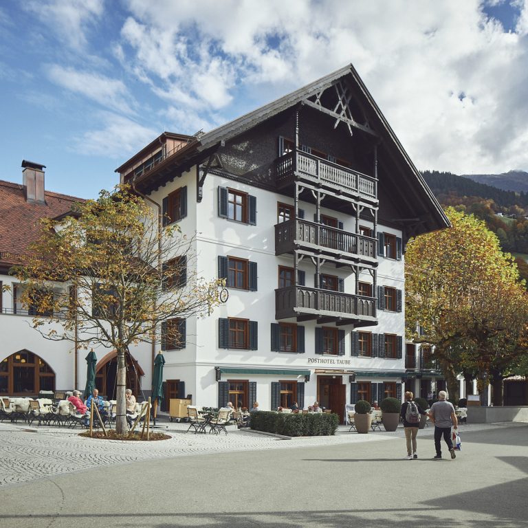 Schruns erfährt aktuell eine rege Bautätigkeit – Bestehendes wird ertüchtigt und ergänzt, Zeitgenössisch-Alpines hinzugefügt. So auch am Kirchplatz, an dem die allseits bekannte „Taube“ einen besonders wichtigen Baustein im dörflichen Gefüge darstellt. Die neuen Eigentümer hieven gemeinsam mit dem Architekturbüro Bernardo Bader, den beteiligten Akteur:innen und regionalen Handwerksbetrieben in einem gestaltungsfreudigen Kraftakt das geschichtsträchtige Posthotel Taube ins 21. Jahrhundert. Sie alle bescheren dem Montafoner Kurort mit dem umfassend renovierten und erweiterten Hauskomplex neuerlich Glanz und Weltoffenheit.