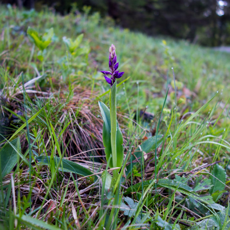 Aber nicht nur das Panorama lädt zum „Genauer hinschauen“ und Gipfelraten. Direkt östlich der Bergstation erfreuen die Blumen und Gräser einer artenreichen Magerwiese das Auge. Auch beim Gasthaus in Laz findet man noch einen schmalen Streifen mit seltenen Pflanzen. Man kann auf diesen Wiesen gefährdete Arten wie den Kiel-Lauch, die Knäuel-Glockenblume oder die Arznei-Schlüsselblume finden. Der mittlere und untere Wegteil führt durch die sonnigen Föhrenwälder des Galgentobels. Mit etwas Glück entdeckt der aufmerksame Wanderer auch hier seltene Pflanzen entlang des Wegs.