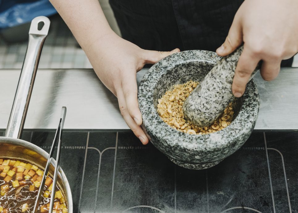 Place the cut out celery coins on a work surface and place the mashed potatoes in the centre of the coins. Fold the celery coins in half and press the ends. Thanks to the celery’s high starch content, these will hold without binding substances.