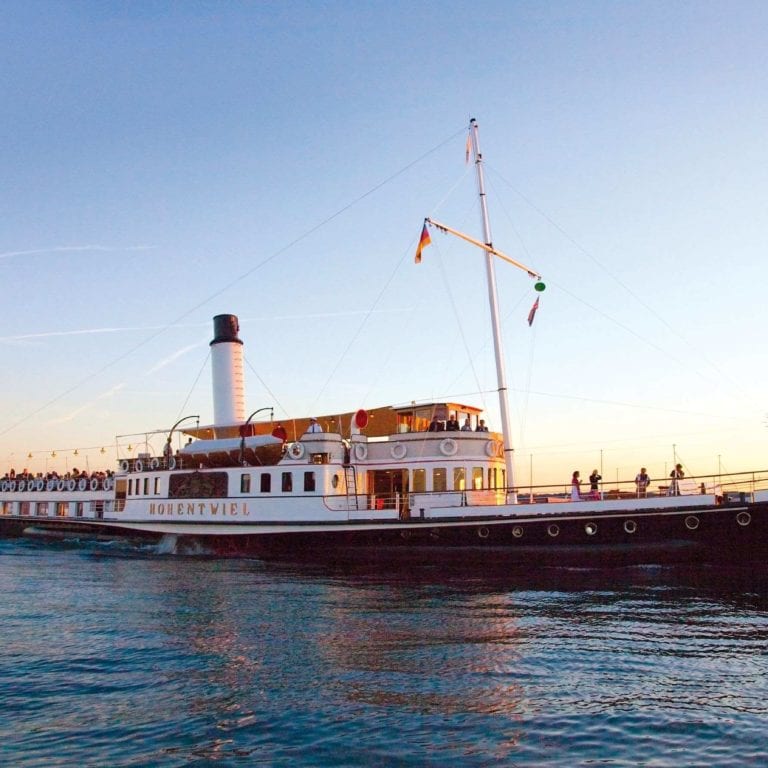There is no more stylish way to experience the sunset on Lake Constance: Gourmet cruises and other events are offered on the lavishly renovated paddle steamship. Chef Heino Huber then serves a 5-course menu on board.