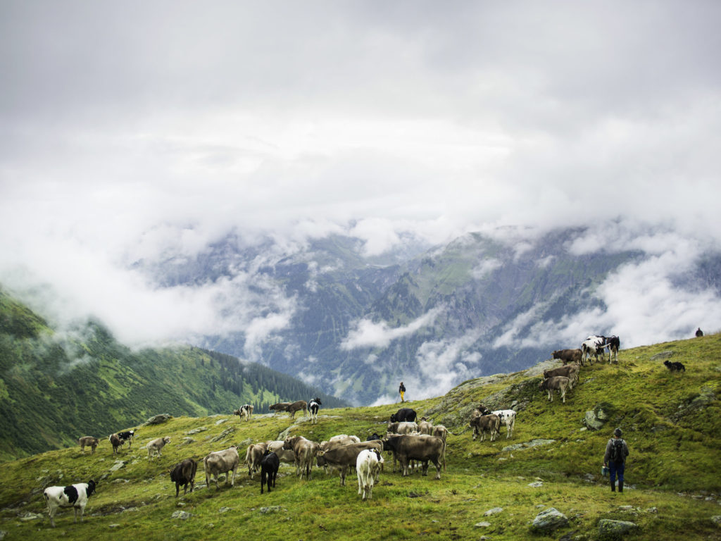 Den Riedmanns fehlt nichts, weder die Menschen im Tal noch Geld, das sich hier oben natürlich nicht so üppig verdienen lässt, wie das in einem anderen Leben für einen Mann wie ihn möglich wäre. „Geld ist eine feine Sache, aber du musst in erster Linie aus Überzeugung auf die Alpe gehen“, sagt er. Die Wanderer, die auf dem Weg zur Kaltenberghütte bei den Riedmanns Rast machen, bewirtet die Vroni gern – aber sie genießt es auch, wenn anschließend wieder Ruhe einkehrt. Auf der Alpe gibt’s eine Brettljause und ein Getränk für kleines Geld. „So haben wir ein Zubrot, um gut über den Sommer zu kommen“, erzählt Veronika Riedmann, „aber am Abend sind wir dann wieder nur wir, das ist das Feine.“