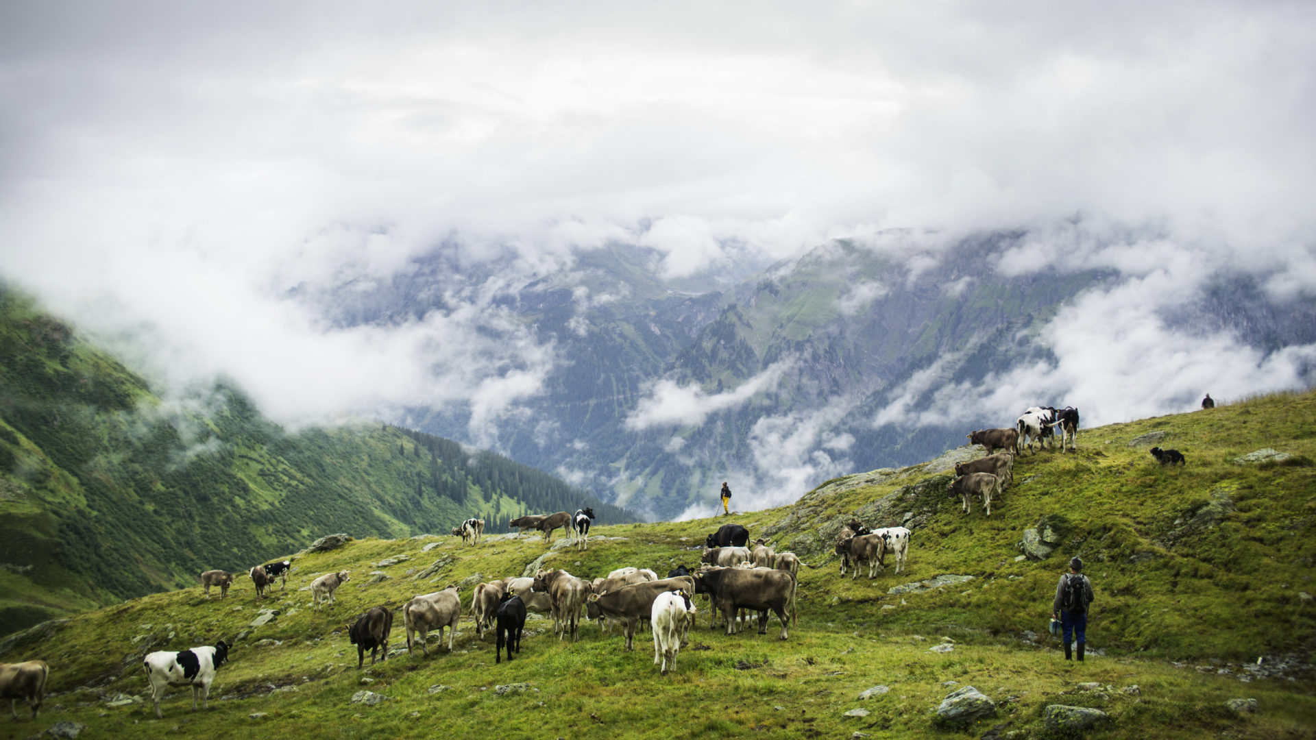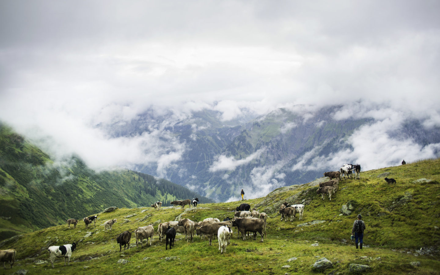 Um zehn ist der ganze Clan im Bett, halb sechs, sechs geht’s wieder hoch, mit der Sonne, zu den Rindern und den Pferden nach. Beschwerlich ist das schon, aber auch gesund für Tier und Mensch: „Je höher wir in den Fels kommen, um so anstrengender ist es“, sagt Martin Riedmann, man müsse sich das vorstellen wie ein Konditionstraining für die Tiere. Und er kennt auch eine Bauernweisheit dazu: „Das Gras vom Stein bringt das Fleisch ans Bein!“ Stress allerdings, den kenne man auf der Alpe nicht. Nur gute Beine müsse man haben. „Wenn die Füße anfangen zu plagen, musst du aufhören!“ Und, ist der Tag schon absehbar, an dem die Familie Riedmann beschließt, auch im Sommer unten im Tal zu bleiben? Der Hirte kratzt sich am struppigen