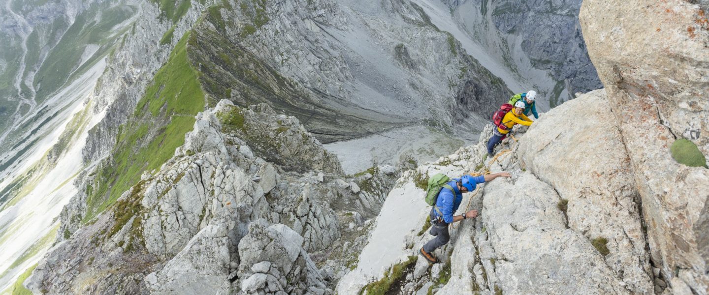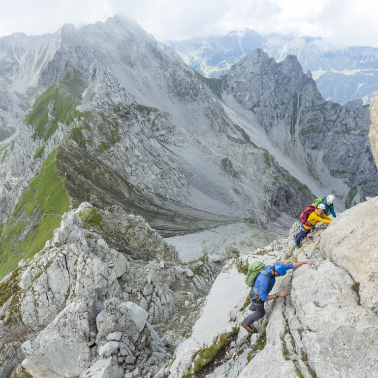 Alpinklettern ist eine der Königsdisziplinen des Klettersports. Wenn Gipfel nur über ausgesetzte Routen, steile Wände oder Grate im alpinen Gelände zu erreichen sind, spricht man vom Alpinklettern. Alpine Erfahrung, Seiltechnik, mobile Sicherungsmittel und vieles mehr gehören zum kleinen Einmaleins dieser Spielart des Kletterns.