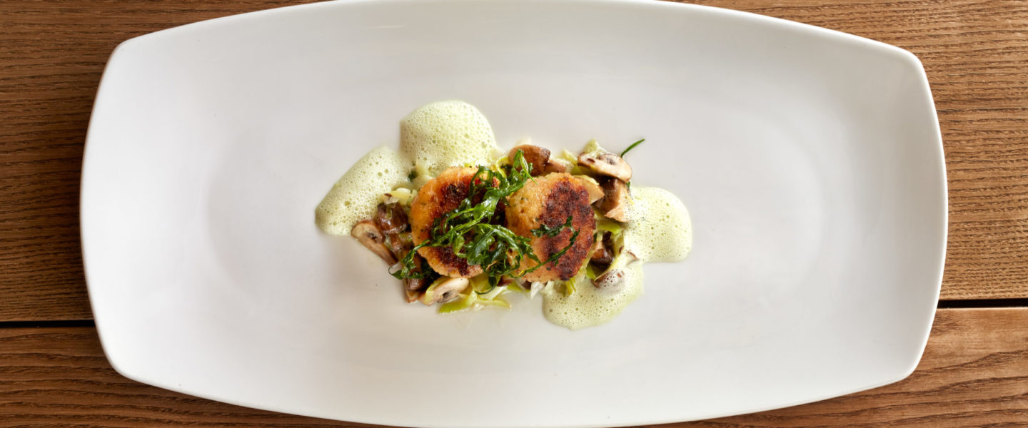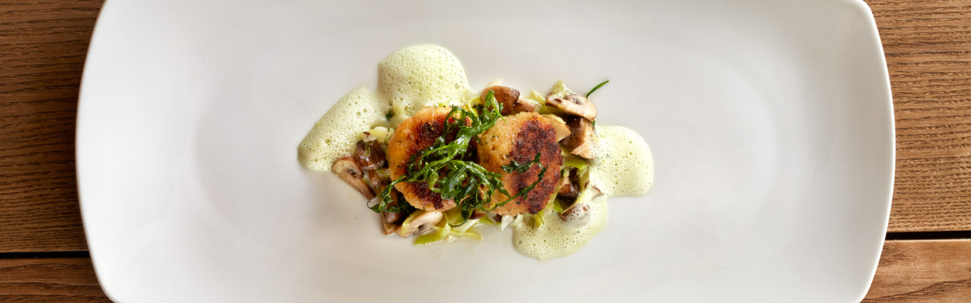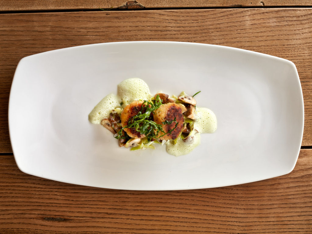 Auch für Knödel ist der Vorarlberger Bergkäse bestens geeignet. Zusammen mit Pilzen der Saison und einem feinen Petersilienschaum eine unschlagbare Kombination.