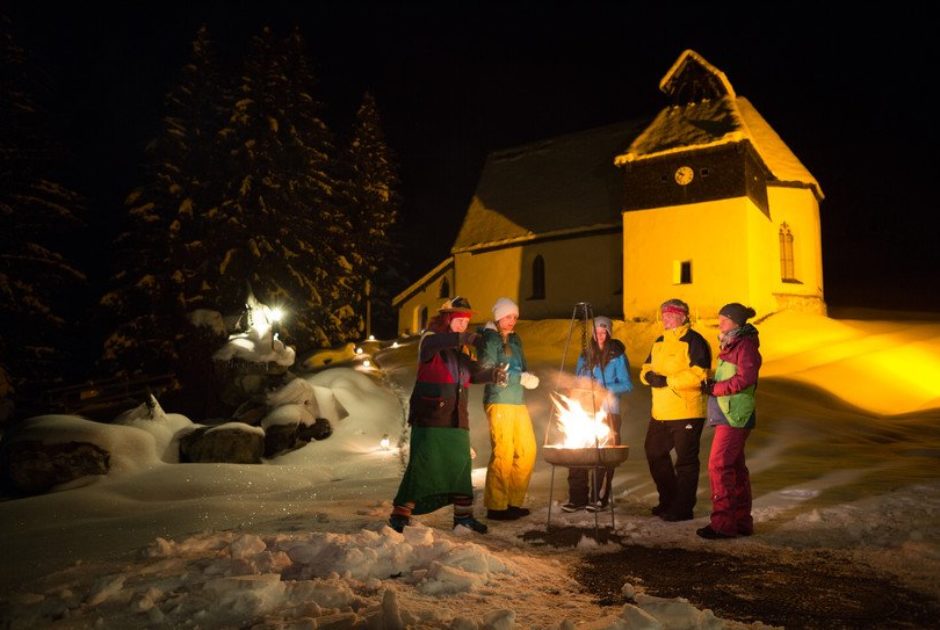 Winter, Vollmond oder womöglich ein besonderer Brauchtumstag/eine besondere Nacht: Bei einer mystischen Wanderung mit Petroleumlampen ausgerüstet erzählt Hertha Glück am Kristberg Montafoner Sagen. Kulinarisch beentdet wird die Runde mit einem Getränk an der Feuerstelle bei der St. Agatha-Kapelle und einem „frühzeitlichen Montafoner Menü“.