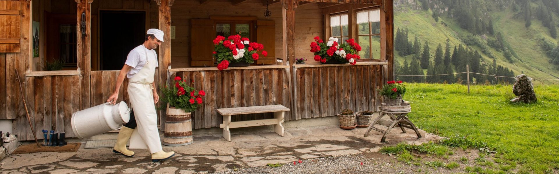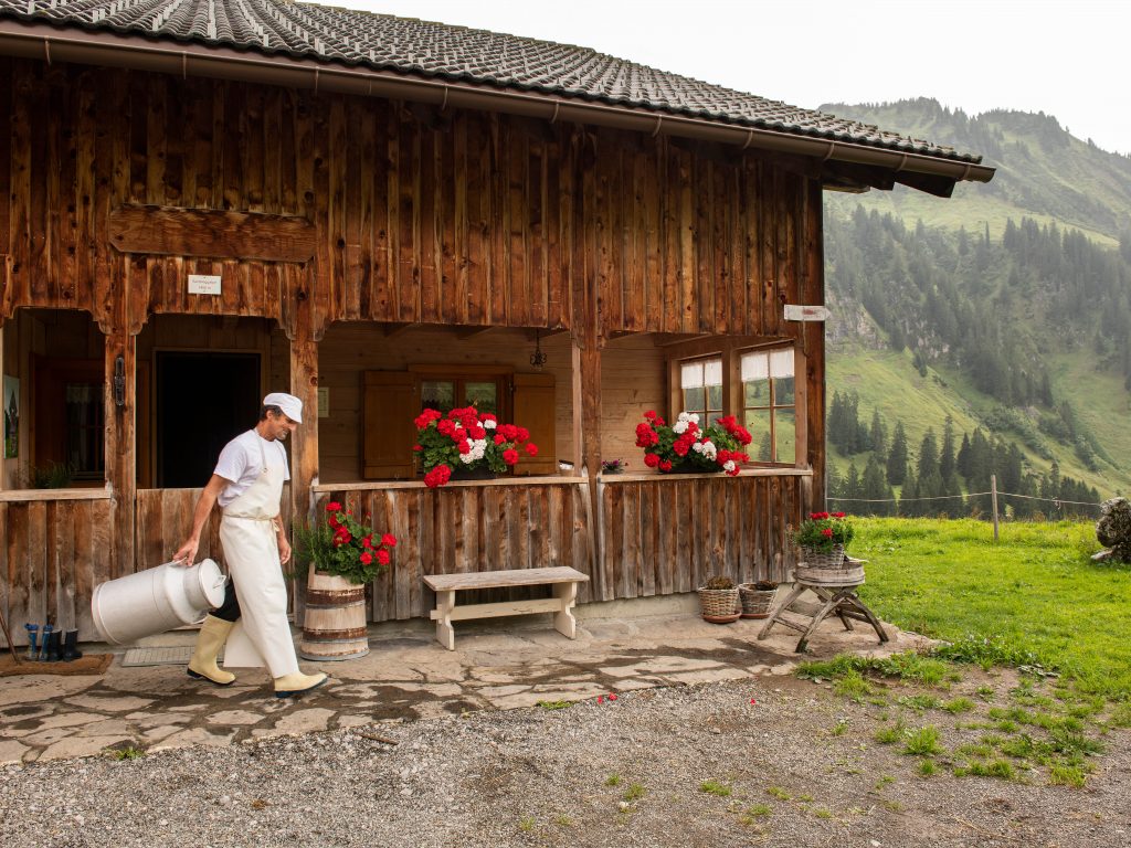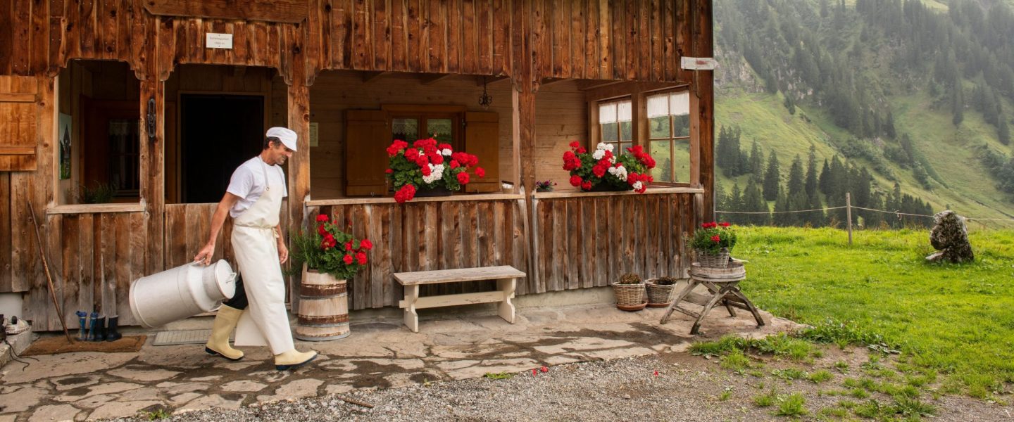 Aller guten Dinge sind drei. Im Bregenzerwald gilt das traditionell auch für die Dreistufenwirtschaft. Grob gesagt geht es bei dieser 2011 zum immateriellen UNESCO-Weltkulturerbe ernannten Wirtschafsform darum, dass die Bauern aus wirtschaftlichen Gründen, aber auch zur Pflege der sensiblen Bergnatur ihre Weiden seit Jahrhunderten in mehreren Stufen bewirtschaften: Nach der Schneeschmelze grast das Vieh die Talweiden ab. Dann geht es aufs „Vorsäß“, eine Art Mittelstation, im Hochsommer auf die Hochalpe und dann etappenweise wieder zurück in den heimischen Stall. Dieses auf silofreie Milch kommende Nomadentum, bei dem nicht selten die ganze Familie mitzieht, ist in der Region noch heute, im Gegensatz zu anderen Alpenregionen, stark verankert. Rund 65 Alpsennereien sind heutzutage noch auf diese Art und Weise aktiv.