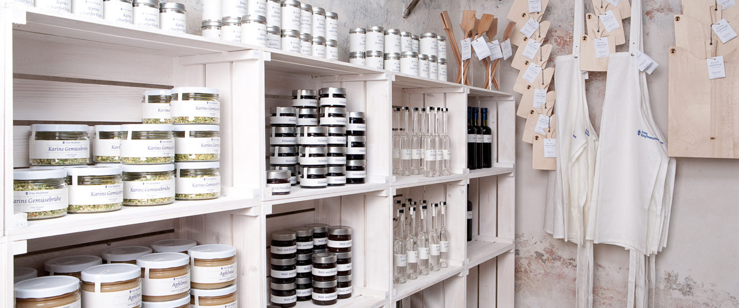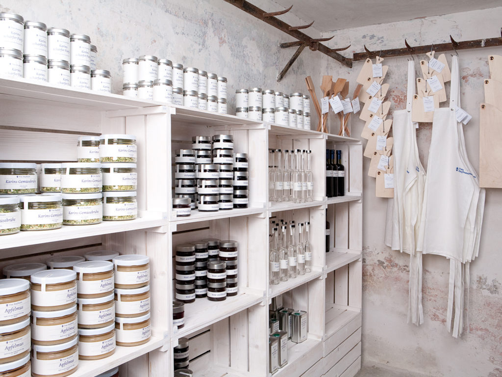 Hochwertige Produkte sind der Grundstein für Karins Küche. Ihre Küche ist – mit Ausnahme bei den Gewürzen – saisonal und regional. Die Kochschule – in der Karin gemeinsam mit ihren Gästen unterschiedliche Menüs kocht, befindet sich ebenso wie ihr Laden im ehemaligen Gasthaus Engel in der Gemeinde Egg, Bregenzerwald.