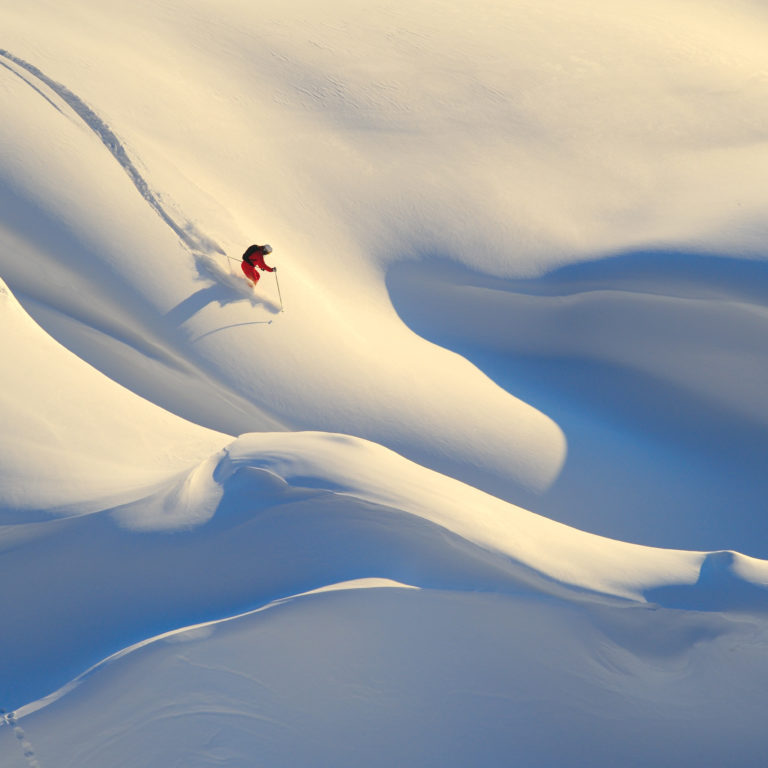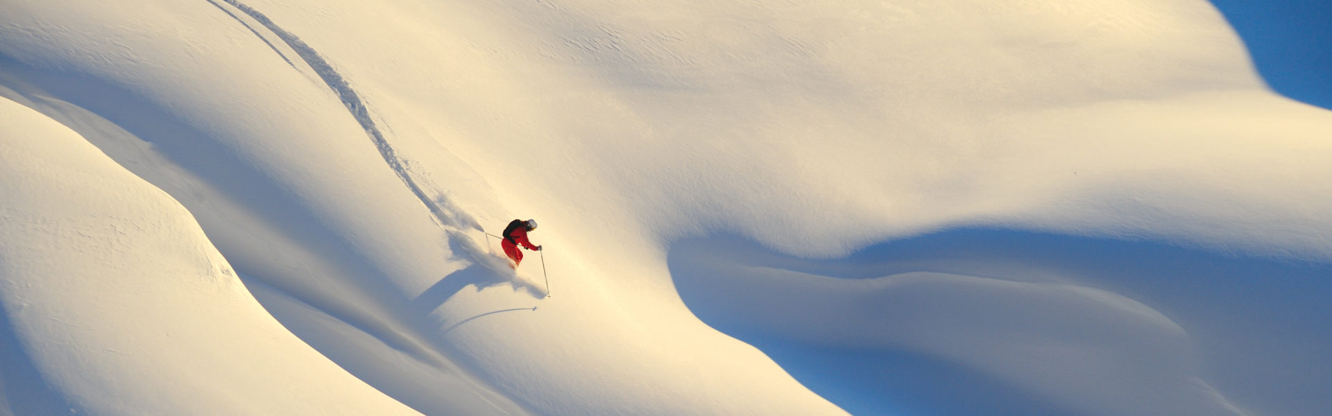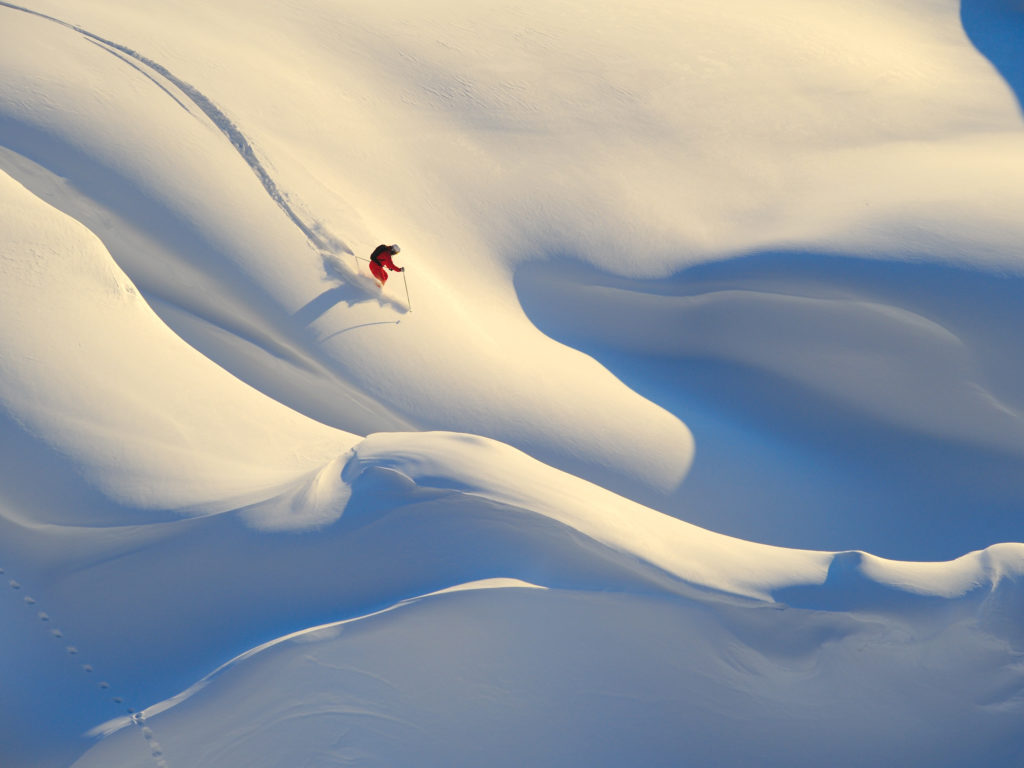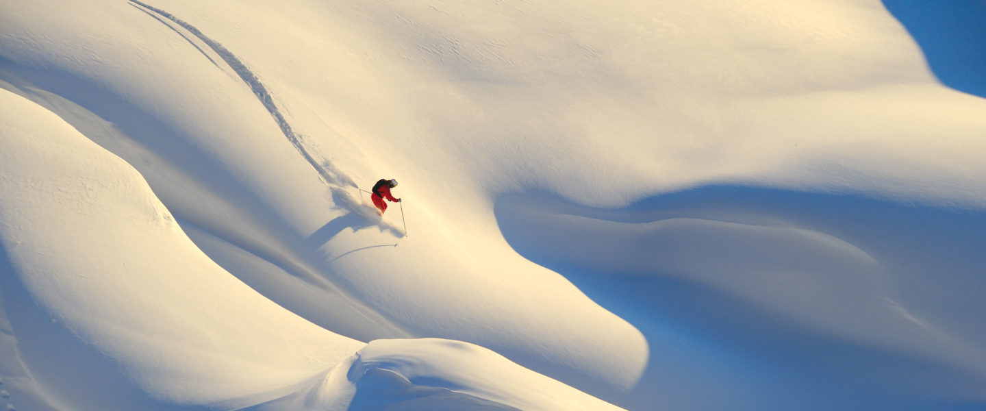 Freeriden: Leicht und elegant sieht es aus, wenn Könner durch den Tiefschnee schwingen und im Gelände ihre eigene Spur ziehen. Das Skifahren auf unpräparierten Hängen hat einen besonderen Reiz und gewinnt immer mehr Anhänger. Im Vordergrund steht dabei weniger das Abenteuer als vielmehr die herrliche Ruhe und der Zauber der Landschaften.