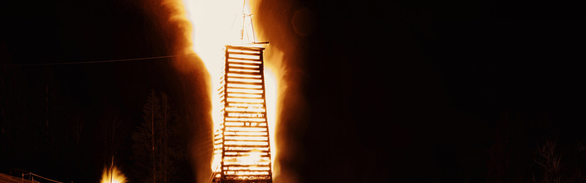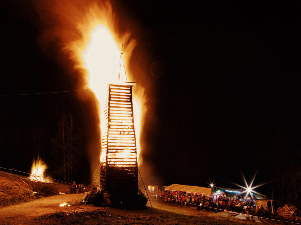 Funken abbrennen hat in Vorarlberg eine lange Tradition und auch heuer wird in vielen Orten der von der Funkenzunft kunstvoll aufgeschichtete, zum Teil bis zu 30 Meter hohe Holzturm – der Funken – gezündet. Höhepunkt ist die Explosion der traditionellen Funkenhexe* oder eines neutralen Objektes ganz oben auf der Spitze.