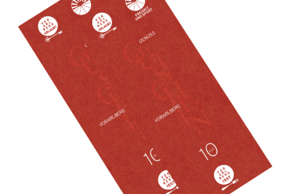 Sie möchten gerne Urlaubsfreude oder kulinarischhe Erlebnisse schenken? Der Genuss GUTSCHEIN Vorarlberg der Vorarlberger Wirtschaftskammer kann von allen Gastronomiebetrieben, der Hotellerie sowie den Freizeit- und Sportbetrieben in Vorarlberg angenommen werden, von A wie Austria Guides bis hin zu W wie Wedding Planer… In der Hotellerie/Gastronomie wird der Gutschein unter anderem bei Nächtigungen in Hotels, Pensionen oder Hostels, in Restaurants, Gasthäusern, Bars etc. eingelöst. Erhältlich sind die Gutscheine bei der Wirtschaftskammer Vorarlberg, online im Webshop und allen bei Raiffeisenbanken des Landes.