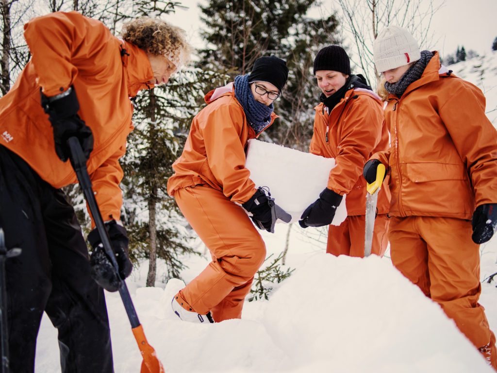 Mit Sägen und Schaufeln ausgestattet machen sich die Teilnehmer von Hittisau im Bregenzerwald aus auf den Weg, um mitten in der Winternatur einen Iglu zu bauen. Mit wasserdichter Kleidung und dem passenden Equipment ausgestattet, beginnen sie unter Anleitung Blöcke aus dem Eis zu sägen und diese mithilfe der richtigen Technik aneinanderzusetzen. Das rege Werkeln an der frischen Luft wird von Pausen mit wärmenden Getränken und stärkender Jause am gemütlichen Feuer unterbrochen. Das Programm beginnt um 9 Uhr, um 18 Uhr kommt man zurück ins Dorf – oder verbringt die Nacht im Iglu.