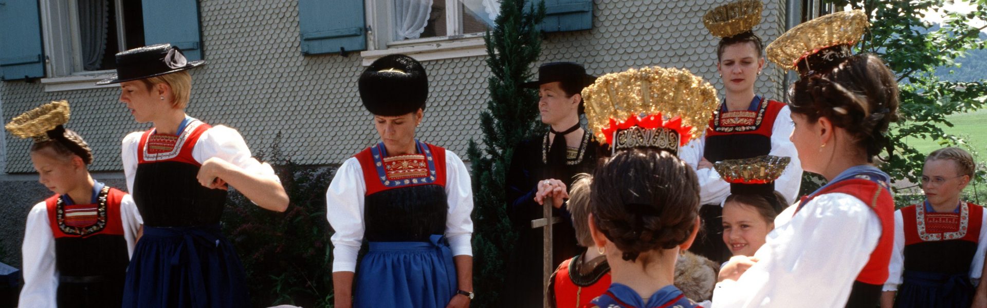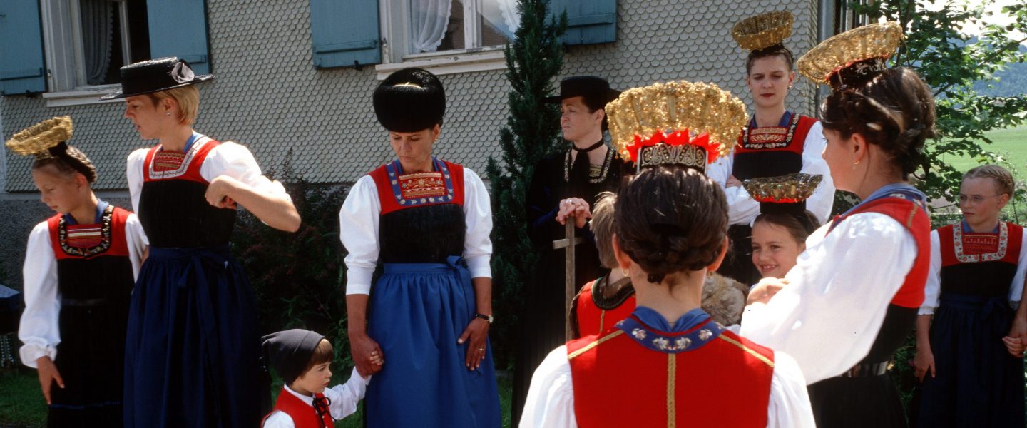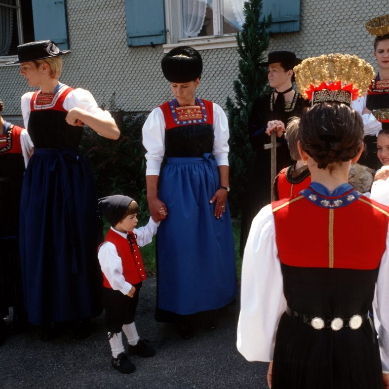 Ein in hunderte Falten gelegtes Plisseekleid aus glänzendem geleimten Leinen, ein mit Goldfäden besticktes Mieder, Gürtel und Schürze, eine langärmlige Bluse, ein Halsband und zumeist ein Strohhut oder eine Spitzkappe – so hat man sie an einem Sonntag vielleicht schon einmal gesehen, die Bregenzerwälderinnen. Juppe nennt sich die Jahrhunderte alte Tracht, die die Trägerin meistens ihr ganzes Leben begleitet und schließlich sogar weitervererbt wird. Umso schöner ist es, dass immer mehr junge Frauen aus dem Bregenzerwald die Kleider ihrer Großmütter entstauben und zu neuem Leben erwecken und die Juppe dadurch heute ihren Weg in die Moderne findet.