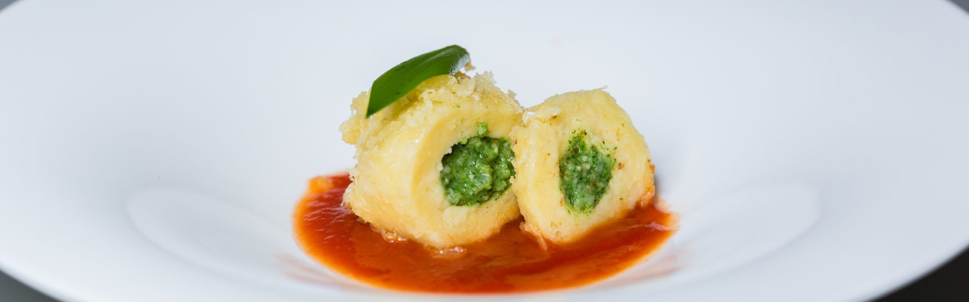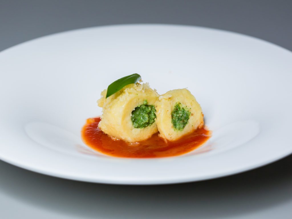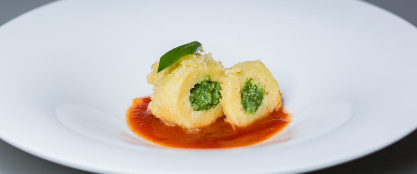 Bärlauch-Käseknödel mit Tomatenkompott © Restaurant Schulhus Krumbach