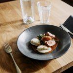 Schweinefilet mit Kellerbierjus, Riebelpolenta, Blattspinat & Senfkaviar