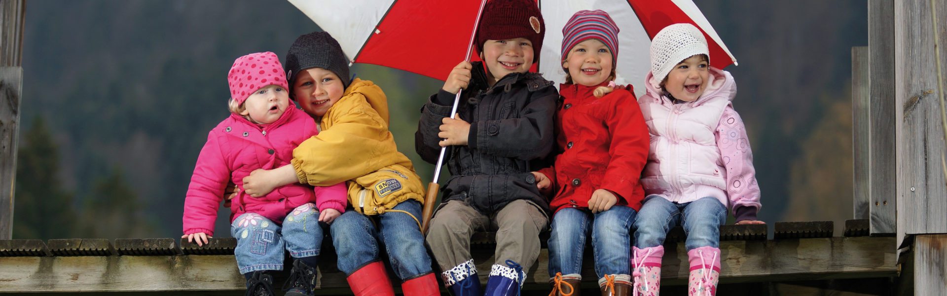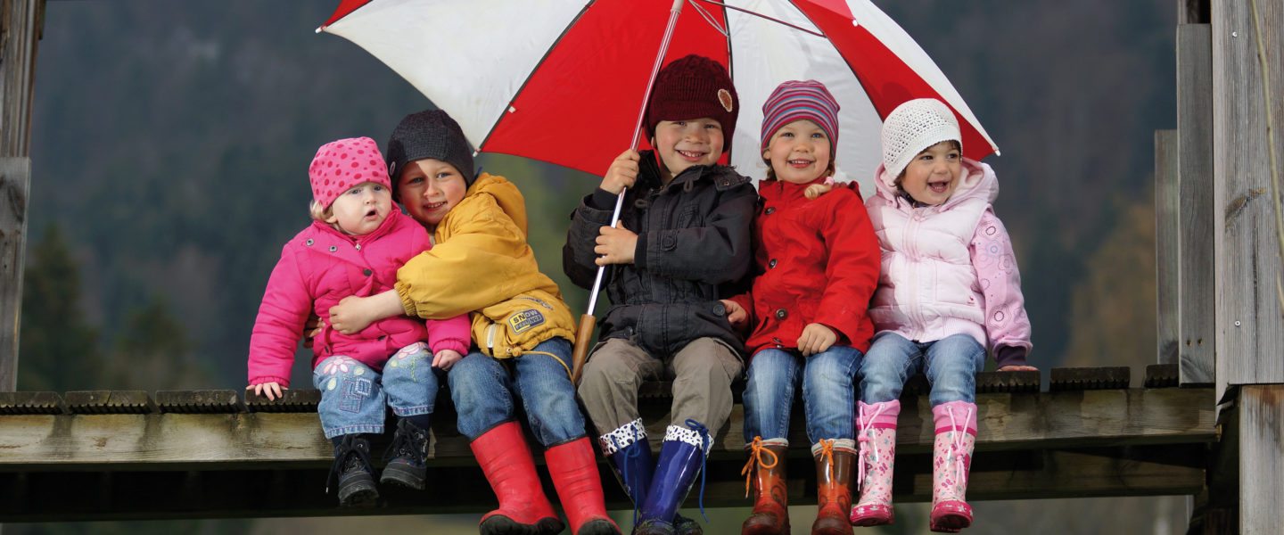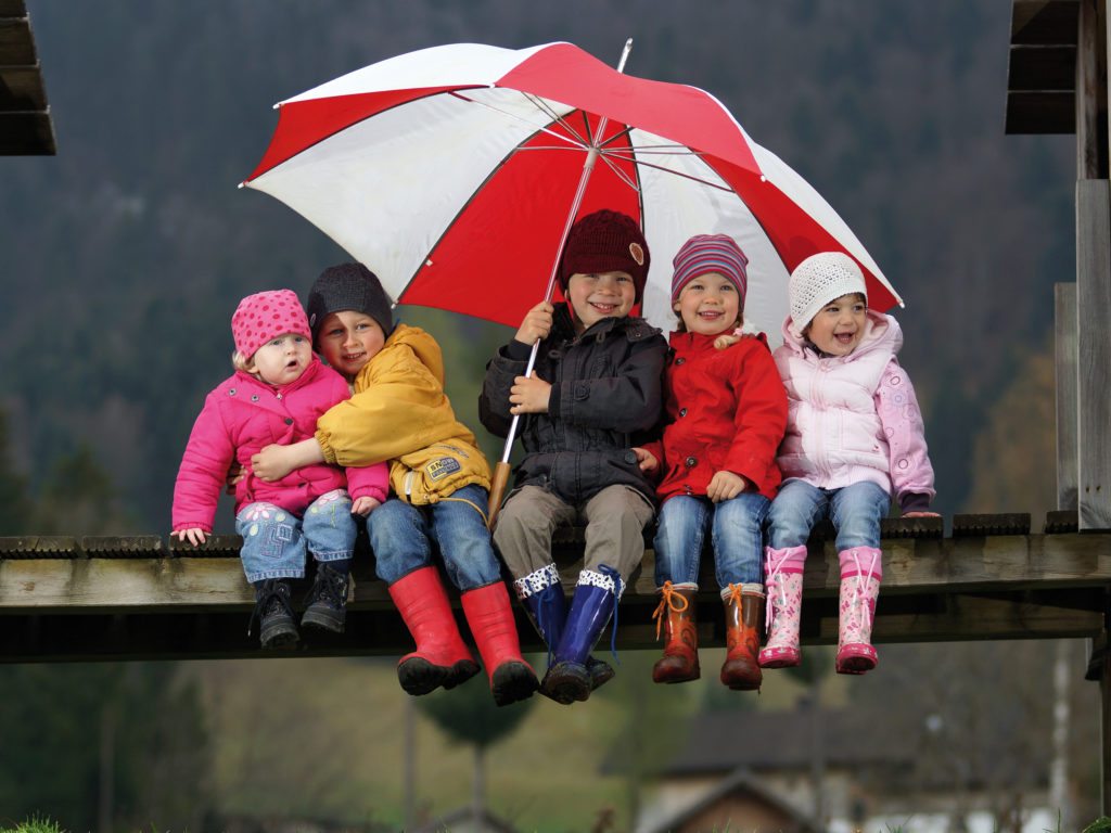 C Aprilwetter, Kinder mit Regenschirm © Ludwig Berchtold/Vorarlberg Tourismus