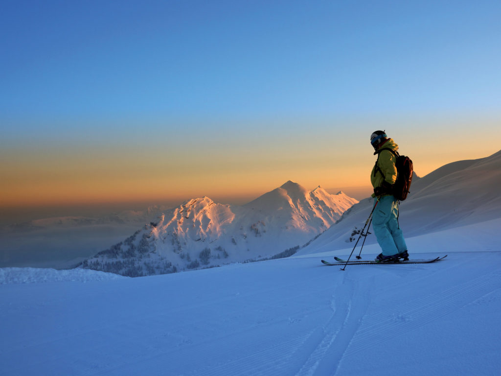 Majestätisch: Herrliche Morgenstimmung und jede Menge Platz auf den frisch präparierten Pisten
