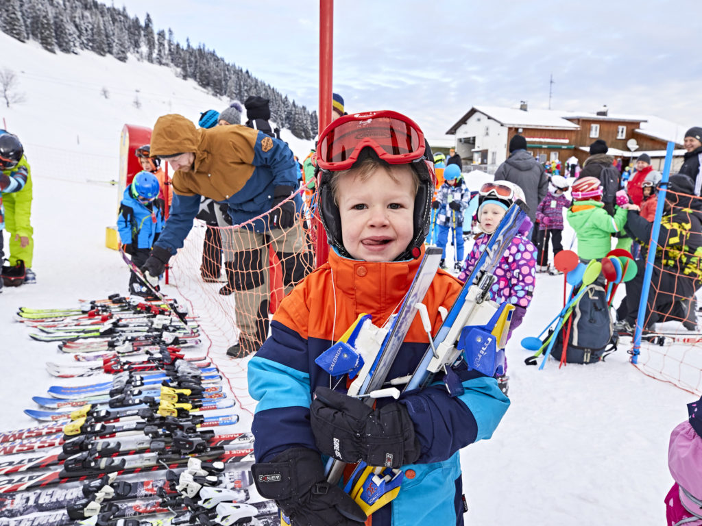 Skifahren lernen mit dem Zauberstab – vier Stunden Einzelunterricht (1 Stunde pro Tag) mit einer speziellen Methode und Kinder ab dreieinhalb Jahren können den Übungshang selbstständig befahren. So garantiert es die Skischule in Schwarzenberg im Bregenzerwald und verlängert den Kurs solange, bis das Kind das Ziel erreicht hat.