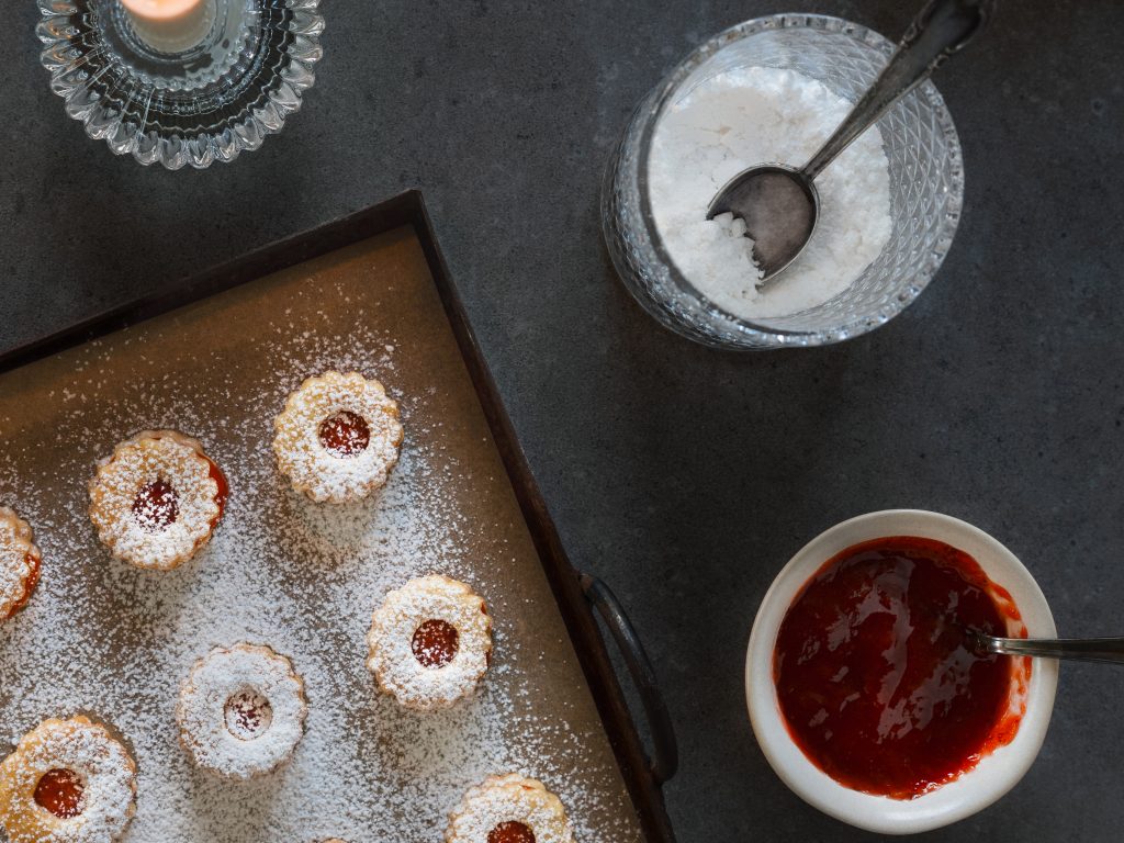Feines Mürbteiggebäck gefüllt mit Marmelade