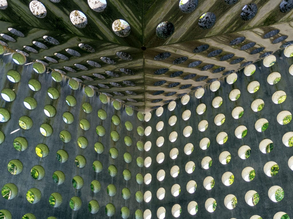 In einer Talsenke im Götzner Ortsteil Arbogast steht ein 5 x 5 Meter große Betonkubus, das Wasserhaus Arbogast. Seine Wände und die Decke sind mit 820 präzise gebohrten runden Öffnungen durchsetzt – eine bautechnische Meisterleistung.