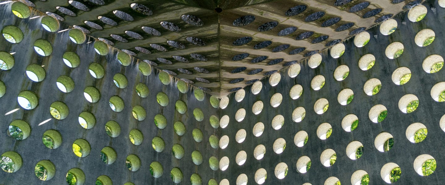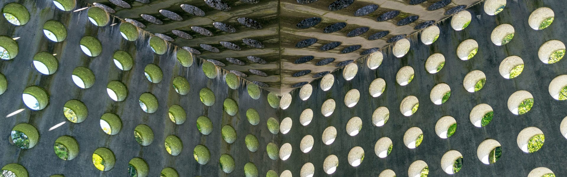 Tritt man ein, sieht man die Trinkstelle, das Wasserbecken am Boden, Lichtspiegelungen und die umgebende Natur. Es ist ein Raum der Ruhe und Besinnung, ein Ort, an dem die Wahrnehmung für das lebensspendende, kostbare und zugleich gefährdete Element Wasser geschärft wird.