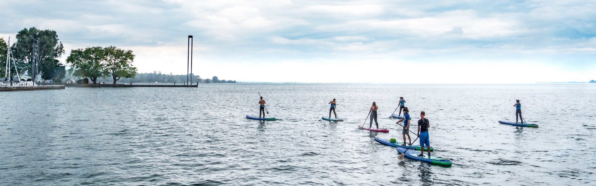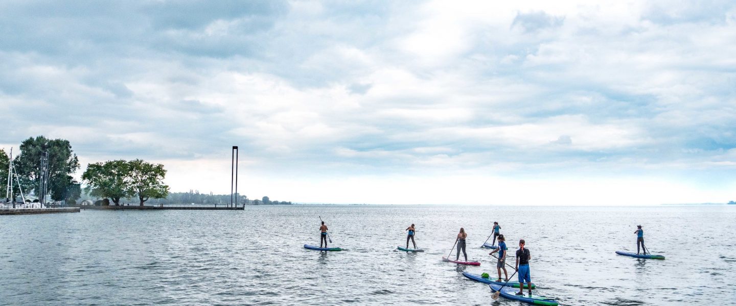 Die Schul- und Verleihstation am Kaiserstrand in Lochau am Bodensee bietet auch Kurse und Touren an. Es gibt Sonnenuntergangs- und Rheindelta-Touren – sowie Touren auf der Bregenzerache für Fortgeschrittene.