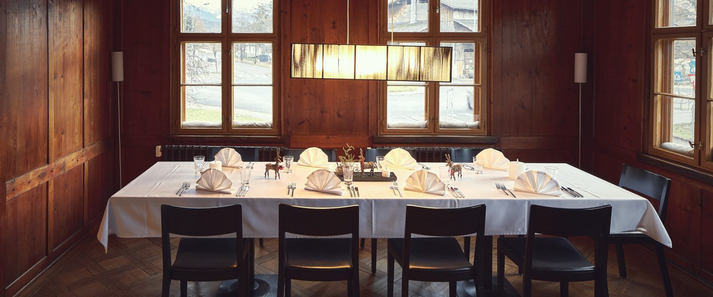 Das hier 2012 eröffnete „Weinhaus Rebberg“ ist schon beim Aufgang einladend: Originalgetreu die neue Sandstein-Stiege mit feinem Schmiedegeländer, stattlich die hölzerne Eingangstüre, großzügig der Mittelflur mit Windfang und Schank. Wer sich weiterbewegt, an der Küche vorbei hinab zur Schnittstelle Stadel, zum Abgang in den gewölbten Weinkeller und zum Ausgang in den Garten, erlebt sie, die vielen Blickachsen, die sinnliche Qualität der Materialien und offenen Konstruktionen. Die drei Gaststuben offerieren unterschiedliches Flair: Die Familienstube lädt mit langem Tisch zum fröhlichen Feiern in größerer Runde, die Rebbergstube zum trauten Tête-à-Tête, die Walgaustube zum Genuss im Nebenan. Hier wie dort sitzt man auf Stühlen von Horgen-Glarus, etwas entrückt der Blick auf die Welt durch die bombierten Original-Gläser, dezent die Beleuchtung. Im „Rebberg“ ist nichts inszeniert, nichts übersaniert, nichts überkandidelt. Das gilt auch für die Küche.
