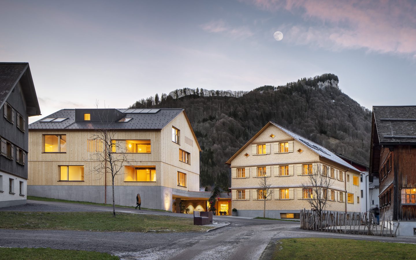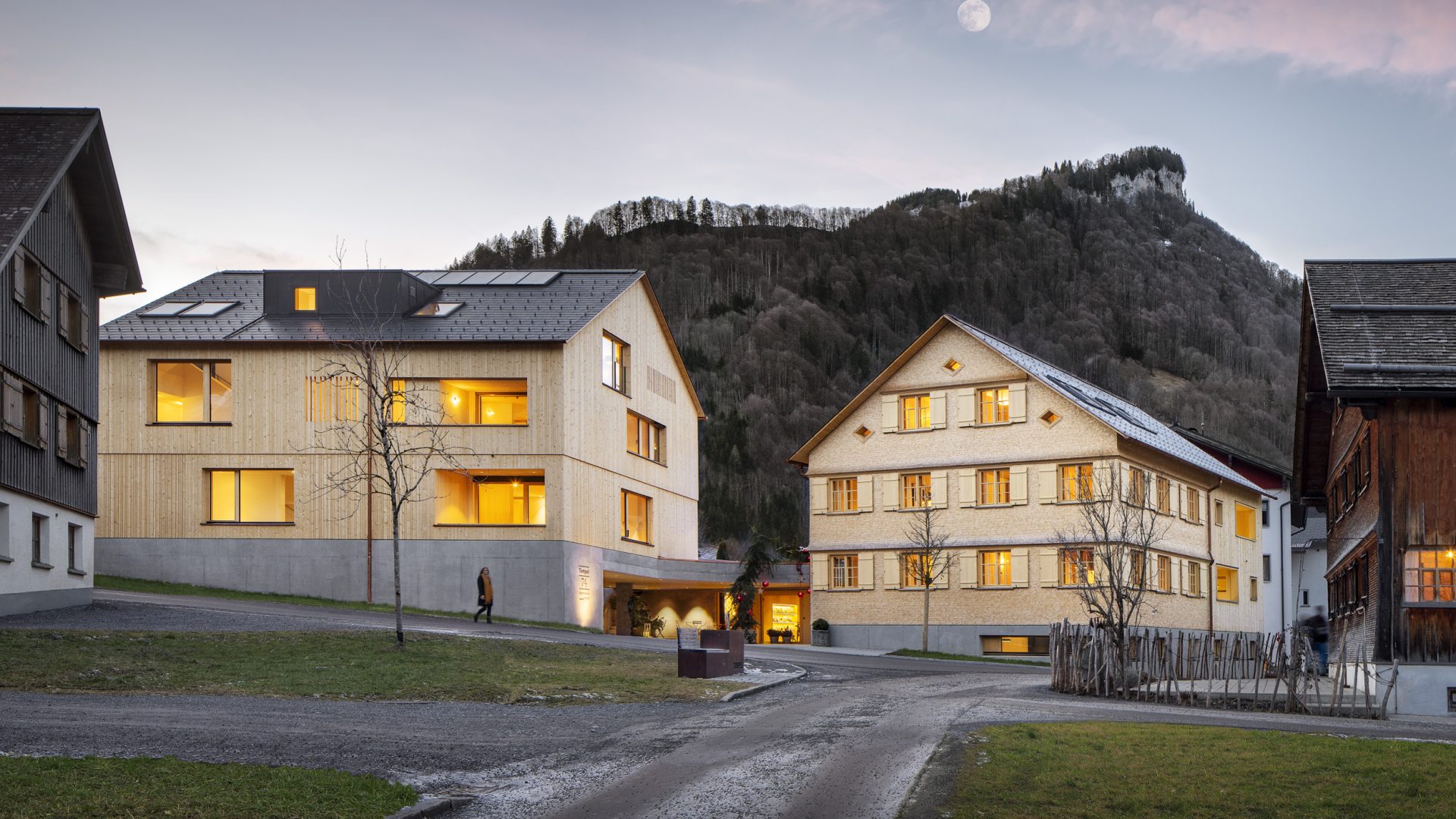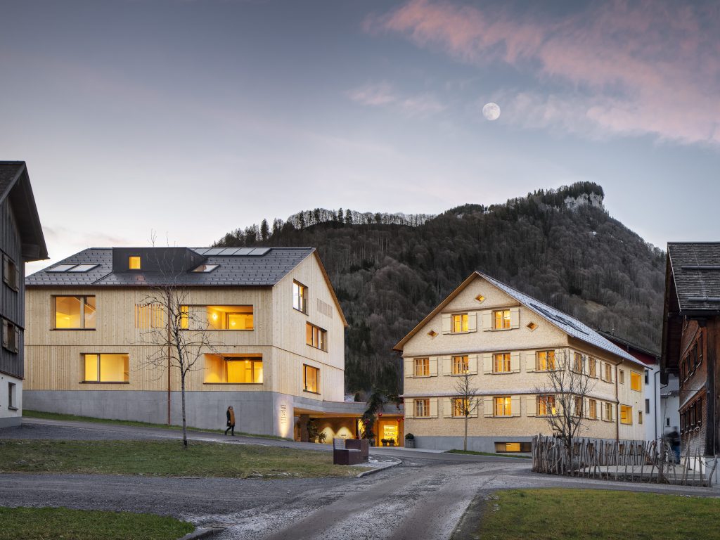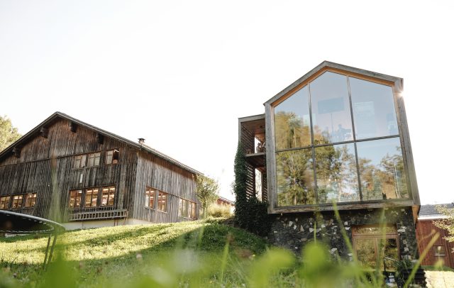 Klare Linien, Glas und heimisches Holz: Moderne und traditionelle Architektur passen gut zusammen in Vorarlberg. Das kann man in vielen Orten überall im Land erleben.