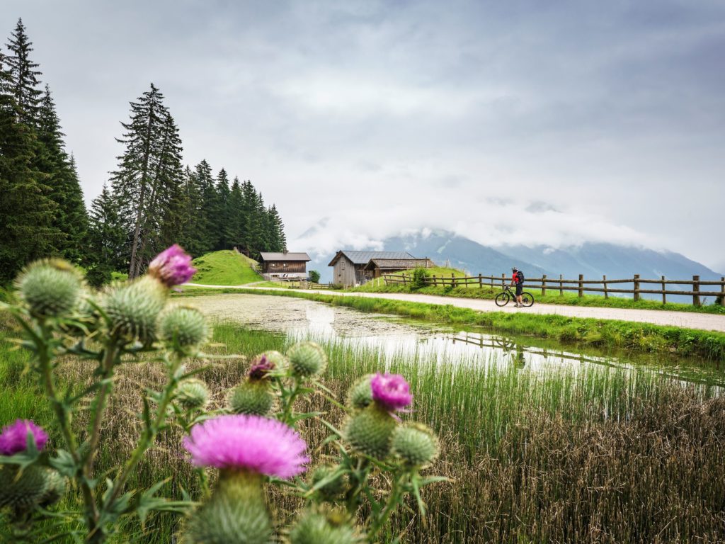 Die Täler blitzen in hellem Grün herauf, die Wälder tannengrün, darüber Bergspitzen im Morgenlicht. Beim E-Biking im Montafon kommt man an gemütlichen Alpen vorbei, genießt großartige Aussichten und erlebt die Sommernatur auf Augenhöhe – zum Beispiel mit Michael Boll. Seit zehn Jahren zeigt der Mountainbike-Guide Gästen mit dem Rad die Schönheit seiner Heimat.