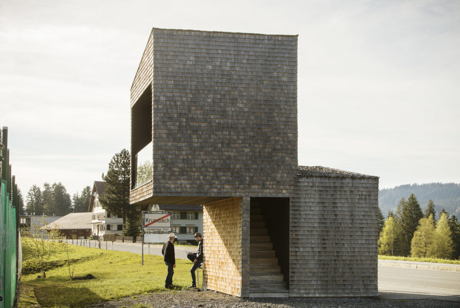 Die große weite Welt kam nach Krumbach. Sou Fujimoto kam aus Japan. Alexander Brodsky kam aus Russland. Smiljan Radic reiste aus Chile an. Insgesamt sieben Architekten aus sieben teils weit entfernten Ländern, die allesamt (noch) nicht zu den Superstars ihrer Branche zählen, aber international einiges Ansehen genießen, nahmen teil an einem verrückten Projekt. Jeder von ihnen entwarf ein ureigenes „Buswartehüsle“ für Krumbach, das dann in Zusammenarbeit mit lokalen Berufskollegen und Bregenzerwälder Handwerkern gebaut wurde. Und somit half, den kleinen Ort auf die große Weltkarte der Architektur zu katapultieren.