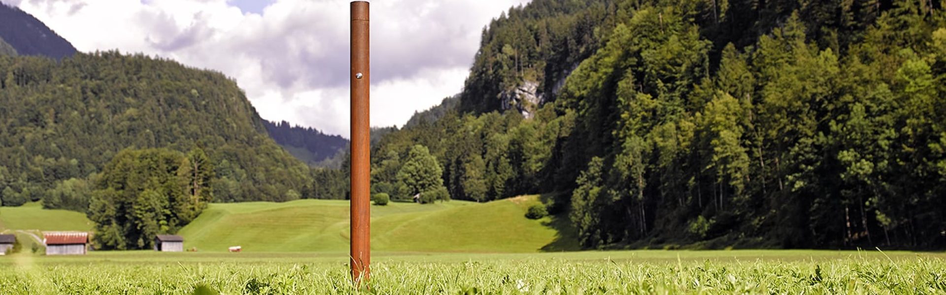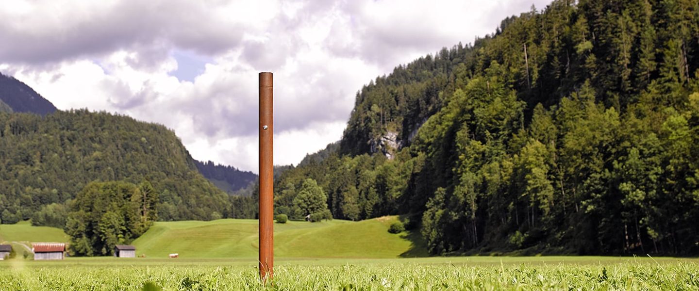 An jedem Weg lenken jeweils 7 bis 10 dezente, rostfarbene Stahlsäulen die Aufmerksamkeit auf ein Gebäude, auf Besonderheiten der Kulturlandschaft, auf handwerkliche oder ökologische Details, auf Facetten künstlerischen, kulinarischen oder touristischen Schaffens. An ihrem oberen Ende sind die Säulen mit einem Glasguckloch versehen, einer Art Vergrößerungsglas. Drückt man auf einen Knopf, geht ein Licht an und man sieht durch das Glasguckloch eine Zeichnung und eine Frage zum jeweiligen Objekt. Die Antwort und Details erklärt ein begleitender Folder.