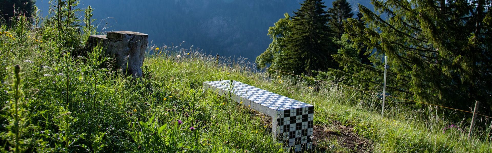 On a new circuit, six well-known artists with a personal connection to Vorarberg, including Alfred Graf and Marbod Fritsch, designed a station along the way. All participants express their ties to the home in their use of regional materials. The resulting works are as diverse as the artists themselves and interpret their views on life in the mountains.
