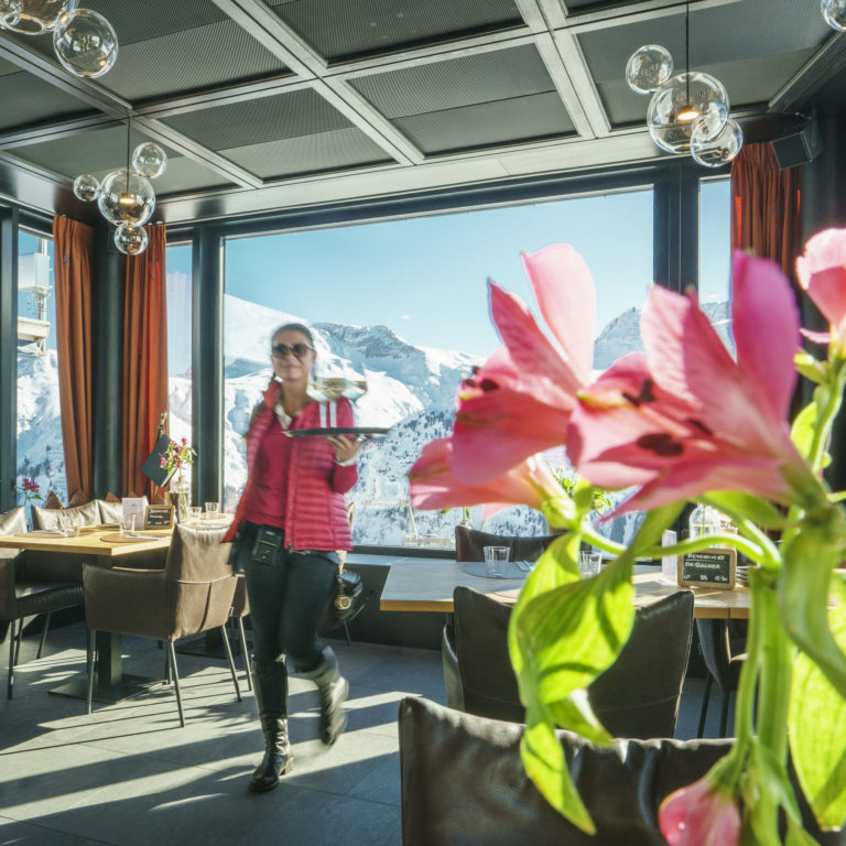 In the panorama restaurant Rüfikopf on the local mountain of Lech am Arlberg, a small, fine selection of á la carte breakfast variations awaits all skiers, winter hikers and sun worshippers daily from 9:00 a.m. at an altitude of 2,350 meters. Here the name says it all with 360° views of the surrounding mountains such as Omeshorn, Rote Wand and Mohnenfluh.