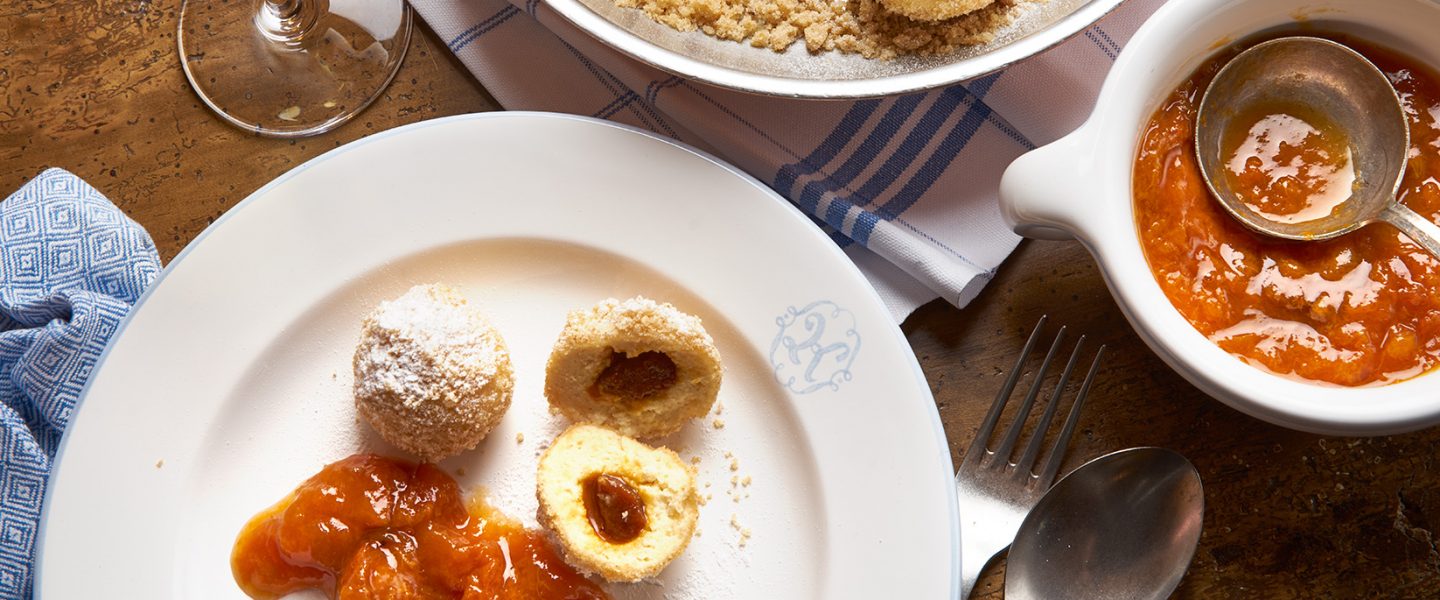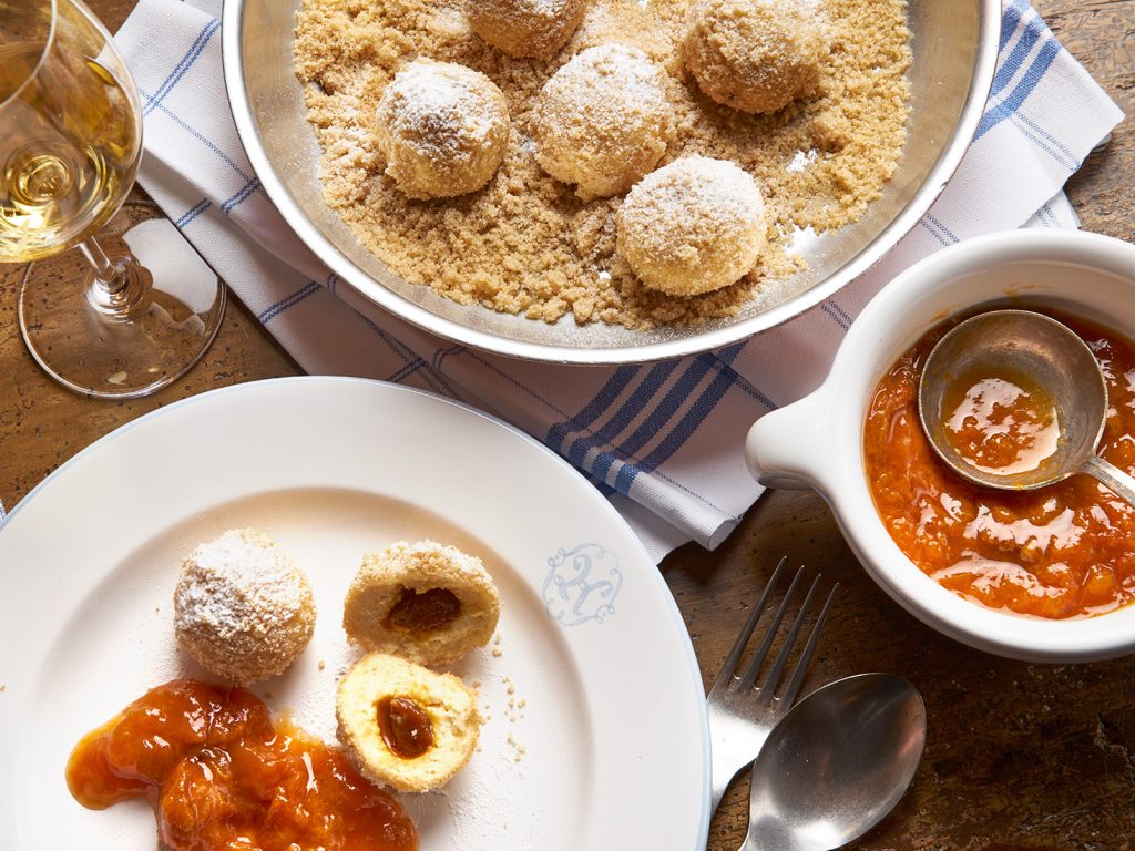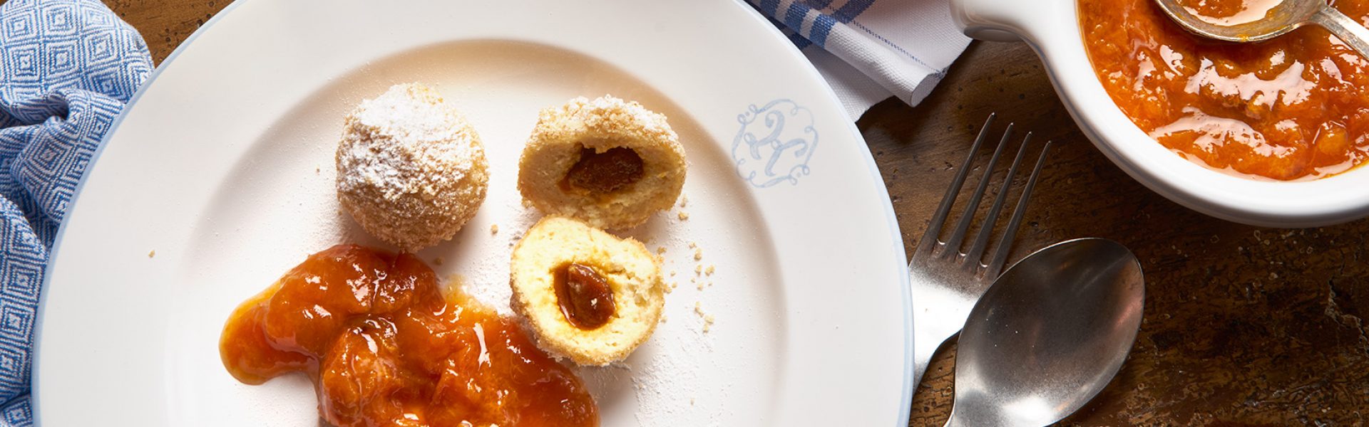 Cottage-cheese dumplings filled with Sig and stewed apricots