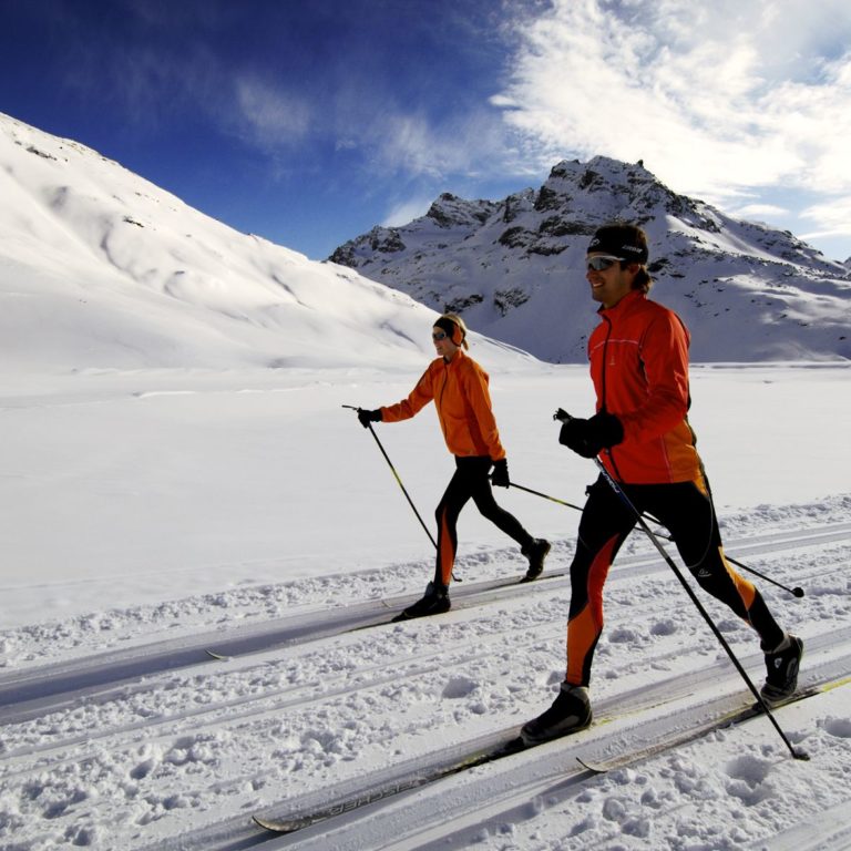 The highest cross-country-ski trail in Vorarlberg can be found at the Silvretta-Bielerhöhe. Here you can glide through the snow at 2,000 metres above sea level. Regardless of whether you prefer classic cross-country skiing or skating, enthusiasts of all stripes will enjoy the glittering winter landscapes of Silvretta. Vorarlberg’s highest cross-country-ski trail extends aoround the Silvretta lake. Visitors can take or a total of 22 km! Here there is something for every level of ability. Tip: Changing rooms and lockers are available at the Piz Buin mountain inn.