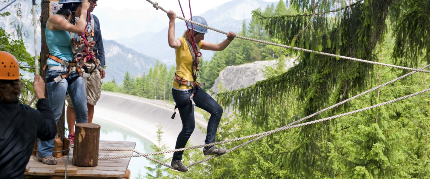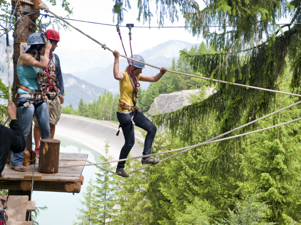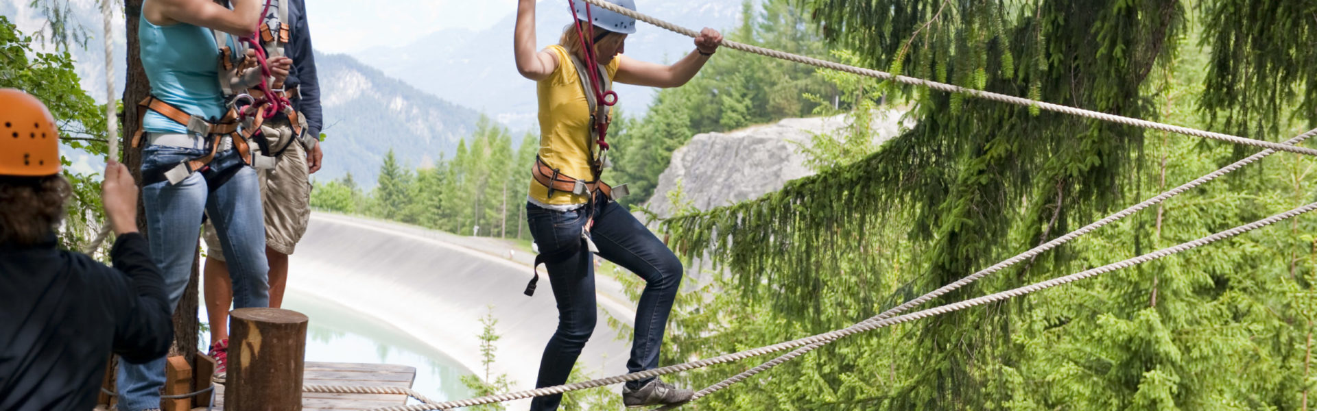 The high and forest-ropes courses in Vorarlberg, boasting a broad range of various difficulty levels, make for ideal communal outdoor experiences. The courses have been set up at scenic sites where many basic forms of movement such as climbing, dangling, balancing, holding, sliding and gliding are required to traverse various obstacles. Luckily you’ll be able to rely on the guidance of professional staff and tried & tested safety systems as you explore the limits of the course!