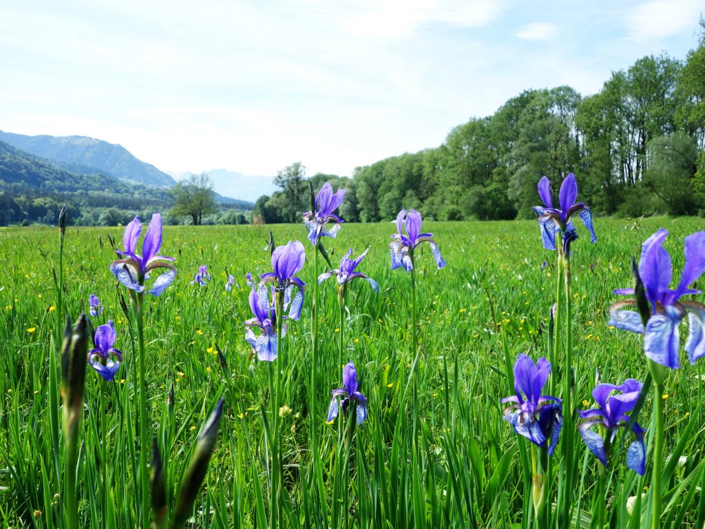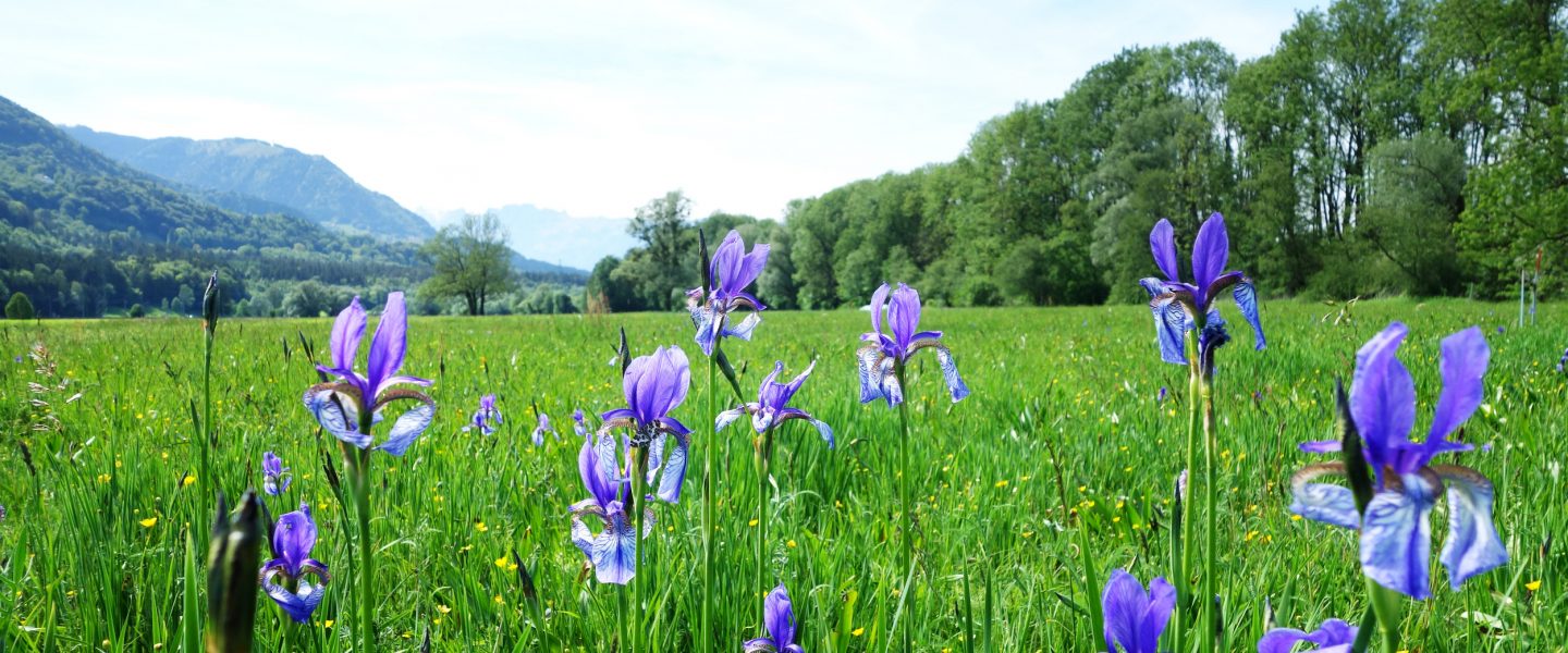 Just a few decades ago, the reed beds (Riedwiesen) in the Rheintal valley were covered with a bright violet band of the blossoms of millions of Siberian irises (Iris sibirica) in early summer. Due to habitat loss and intensive agricultural practices in many areas, only remnants of this former sea of blossoms can be found in Vorarlberg today. The Bangs-Matschels European Protected Area in Feldkirch is still home to an impressive amount of these gorgeous blossoms today. In addition to beautiful irises, this protected area in the three-countries border triangle area between the Alpine Rhine and Ill rivers provides valuable habitat for numerous rare butterflies, reptiles, amphibians and some of the rarest bird species in Austria. For this reason, it is particularly important to be extremely careful when visiting the area. Whether riding your bike or walking, the special features of the protected area’s flora and fauna can be best enjoyed from the trails.