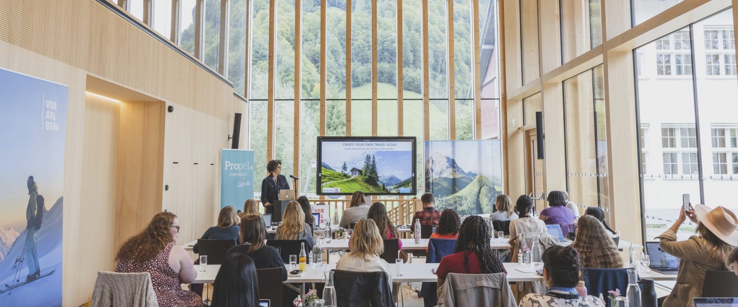 After the premiere in Graz in 2019, the second edition of the international Propel Conference took place in Vorarlberg in autum 2021. 30 bloggers and content creators from all over the world visited Vorarlberg to learn more about the “business of blogging” at the #PropelVorarlberg conference. Under the motto “Propel your blog to the next Level!”, participants learned practical tips from 10 expert travel bloggers in exciting presentations during three varied conference days to professionalize their blogging. Session topics ranged from SEO optimization and video workshops to story pitching.