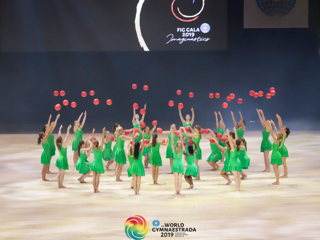The gala of the International Gymnastics Federation FIG (Fédération Internationale de Gymnastique) was one of the special events of the World Gymnaestrada 2019 – an event that should present the diversity of „Gymnastics for All“ and its interpretation by the FIG. In the 90-minute gymnastics, light and music show, groups from all continents performed in a combined programme and brought the international flair of the World Gymnaestrada into another level.