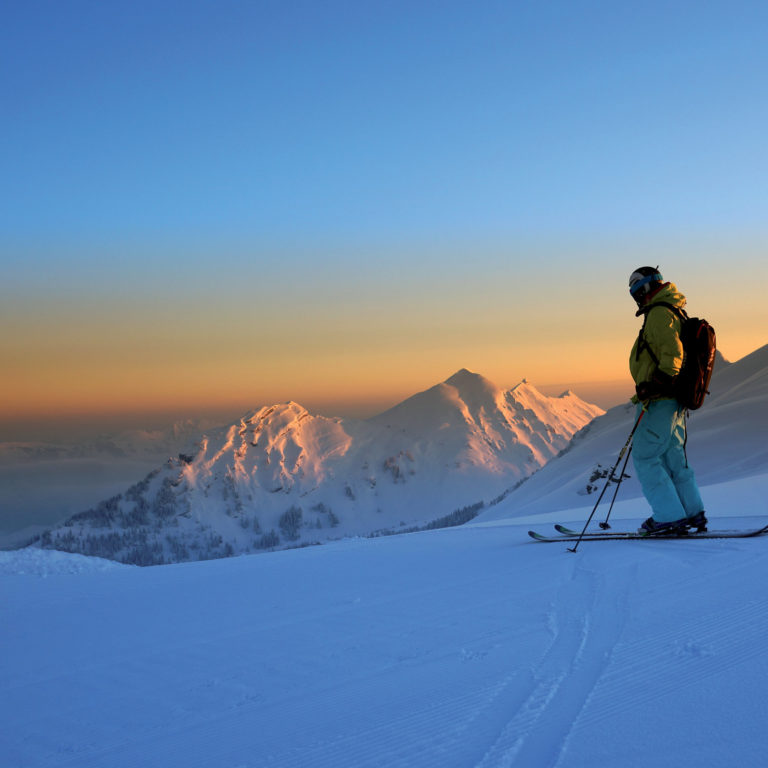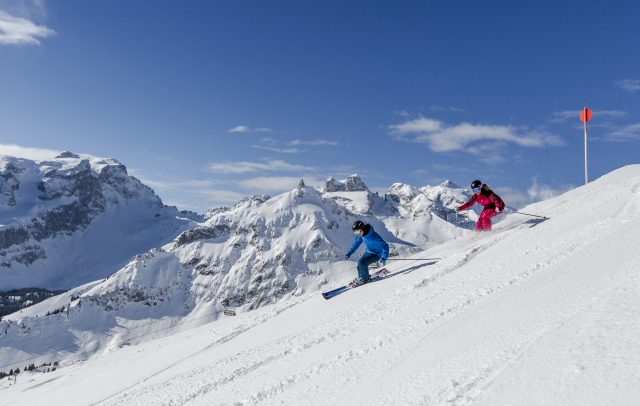 You’ll have the slopes all to yourself, and the majestic mountains rise up to the left and right as you ski down from Muggengrat in the direction of Zürser Täli. Making gentle turns and listing to exciting anecdotes and information from your guide – that’s truly a one-of-kind experience.