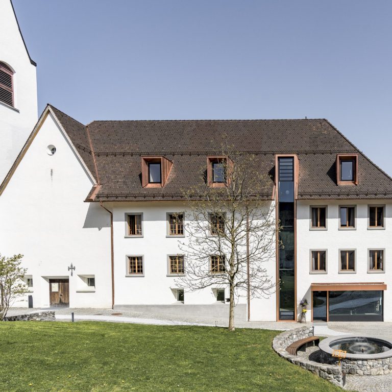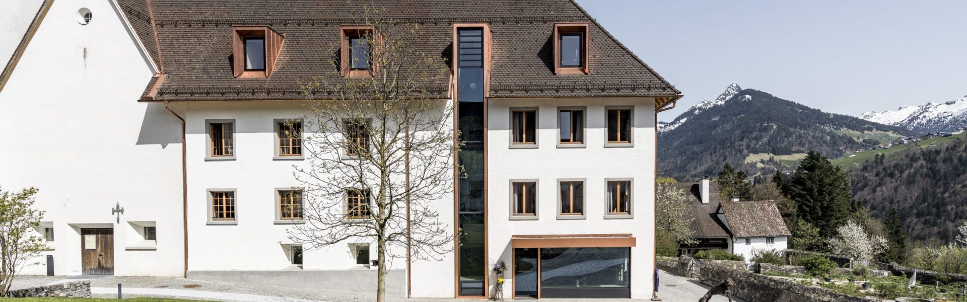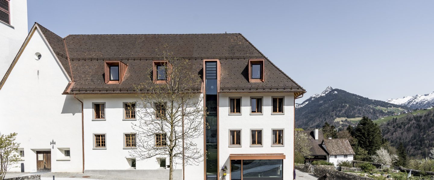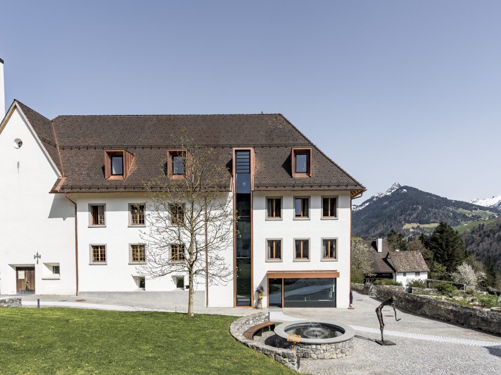 The St. Gerold priory has been renovated in several stages since 2014 and finished 2024. The concept combines existing and modern elements, plays upon the monastic atmosphere, and makes use of natural, regional materials such as wood. Vorarlberg architect Hermann Kaufmann and craftsmen from the region were entrusted with the implementation. As early as 1997, Hermann Kaufmann planned the much-acclaimed indoor riding arena of the priory, which also offers hippotherapy.