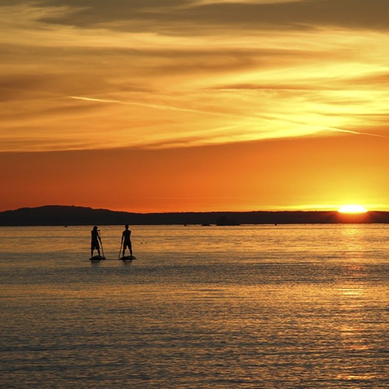 Though the sport of stand-up paddleboarding grew from surfing in faraway Hawaii, Lake Constance is actually an ideal place for beginners to try out this sport. Head over to the “Ländle SUP” school and rental station at Kaiserstrand in Lochau for high-quality rental equipment and a wide range of courses and tours. Certified SUP instructors train, guide and ensure the necessary safety precautions.