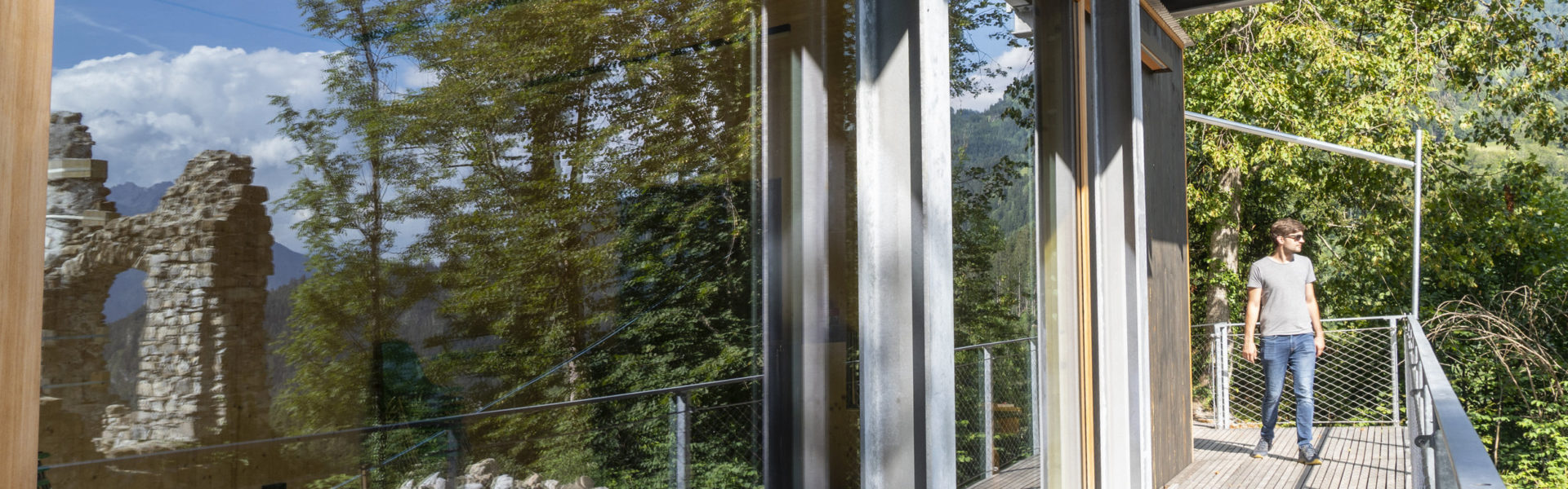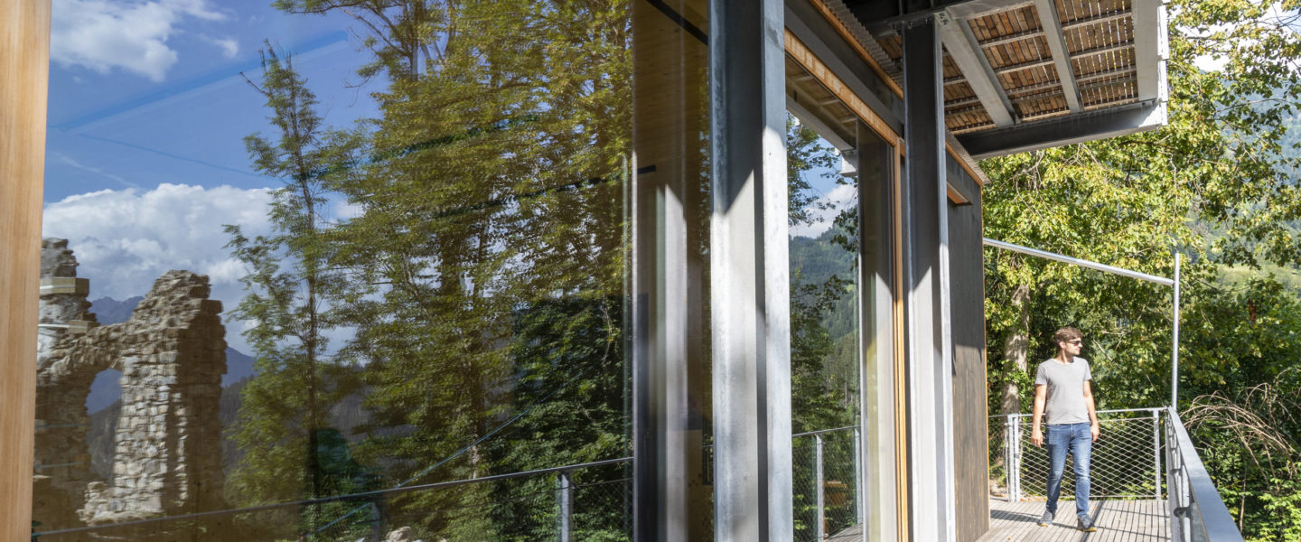 Threatened by collapse, the castle ruins were restored in several stages from 2010 as part of a joint initiative. Together, the Burgfreunde Blumenegg (friends of Blumenegg castle) association, the Walserherbst festival and the Tyrolean-based “Kompott” architects Martin Mackowitz/Nikolaus Skorpik transformed the ruins into a living cultural and experiential space.