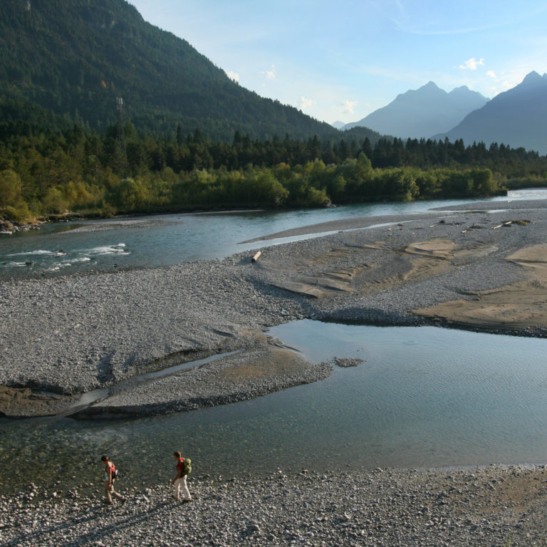 The Lech Route (Lechweg) runs along one of the last wild river landscapes in Europe. On about 125 kilometres the hiker accompanies the Lech from its source near Lake Formarinsee to the Lech Falls in Füssen in the Allgäu.