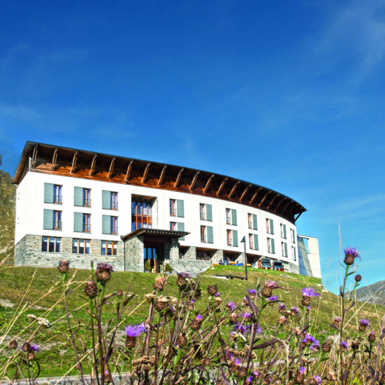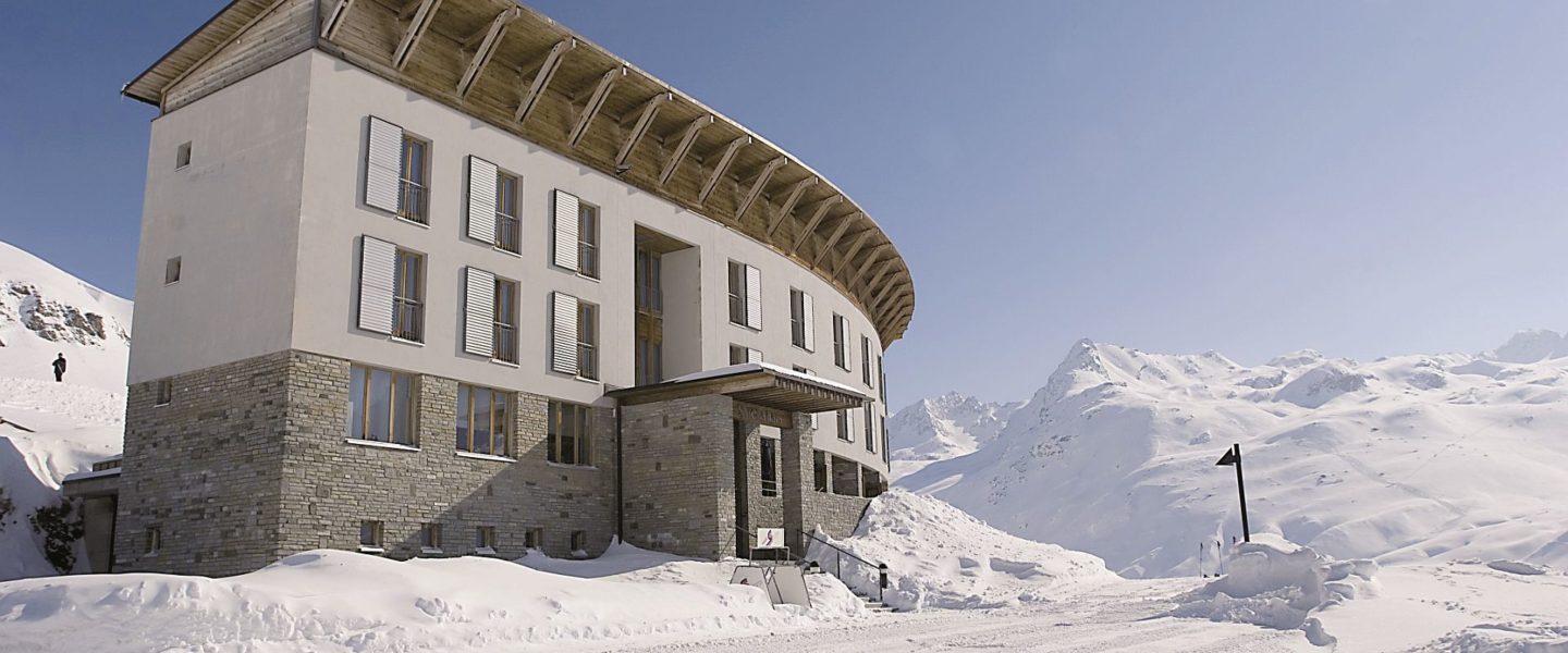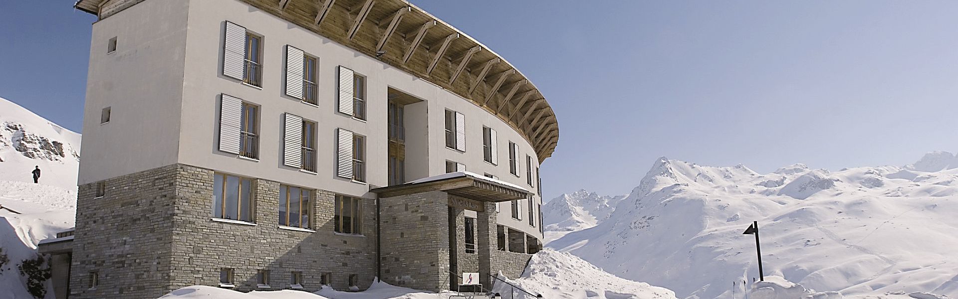 Whether for an overnight stay or simply to dine, the multifaceted Silvrettahaus (hotel, refuge on the pass, and organisational hub for snow clearing equipment) is always worth a visit. The subtle design is impressive: views from the rooms and from the restaurant extend over the reservoir to the numerous surrounding peaks. The Silvretta Hochalpenstraße High Alpine Road is only open in summer and plenty of motorcycles and a few cars pass by. In winter, it is place of tranquillity as the Bielerhöhe is only accessible via cable car and a tunnel bus journey.