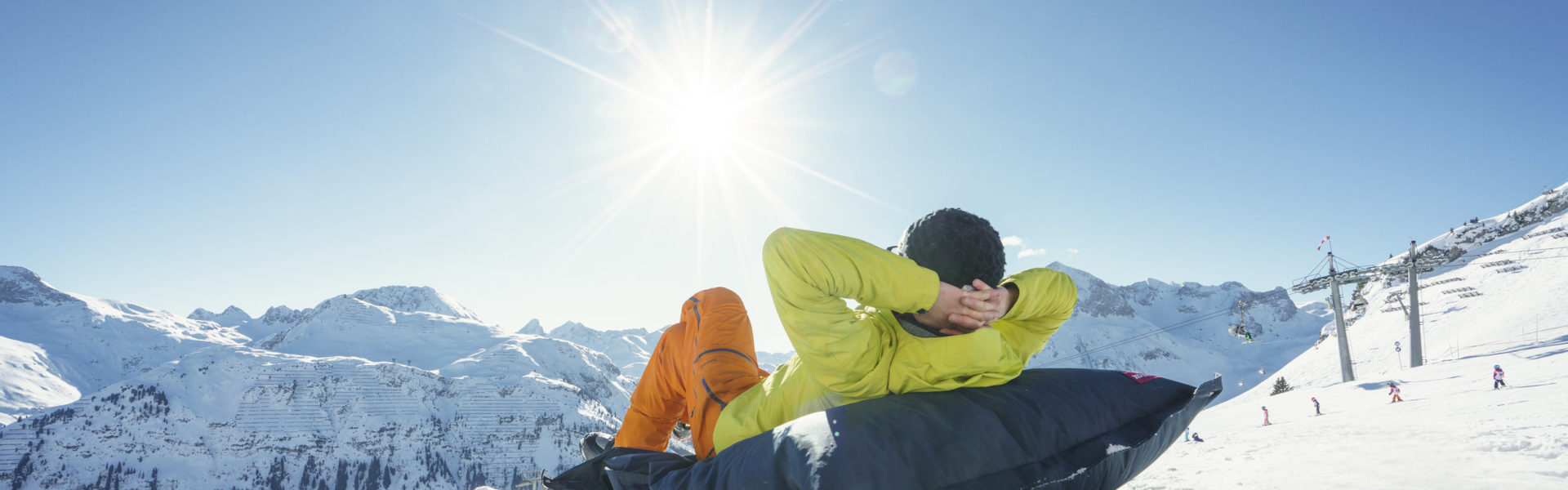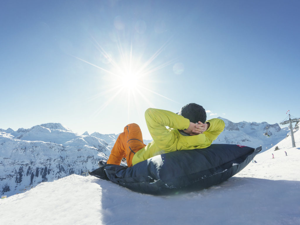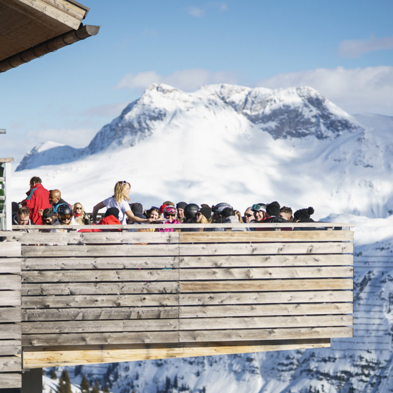 What could be more delightful than relaxing on a terrace and enjoying the warmth of the sun and the magnificent spectacle of a white winter wonderland? There are plenty of sunny spots in the ski areas of Vorarlberg – you can choose to soak up the sun outside traditional ski huts, modern ski huts or mountain restaurants. From the contemporary Balmalp in Lech to the energy-efficient restaurant Frööd in Brandnertal, from the rustic Max Hut in Mittelberg in Kleinwalsertal to the cosy Obwaldhütte in Gargellen in Montafon: Whether you are enjoying fine food and drink, lively conversation or peacefully contemplating nature, you will have a wonderful time there.