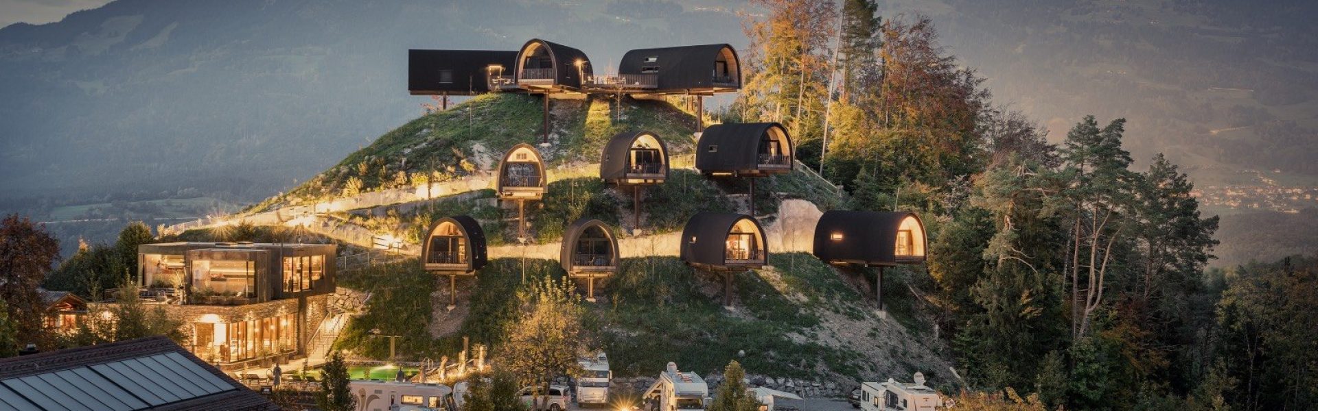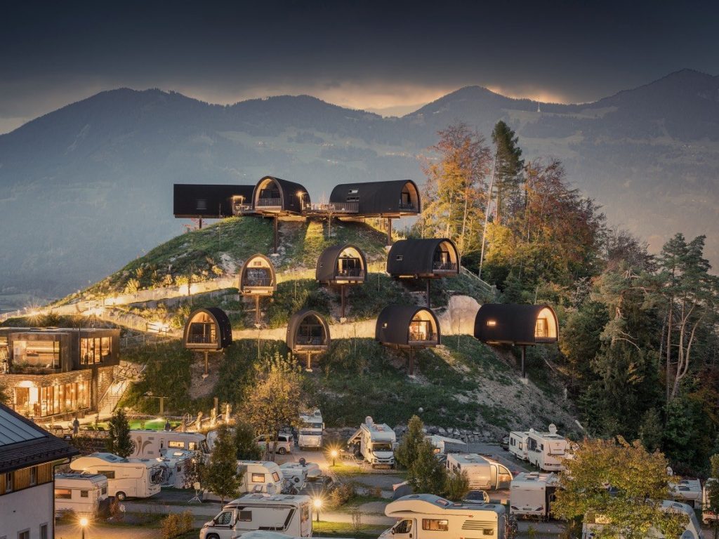 While drafting new ideas for their “Alpencamping” facility, the family hit upon the notion of building individual structures on the hill. These properties would cater to travellers arriving without a campervan and looking to enjoy added comfort. The Moriks commissioned Reinhold Hammerer, whom they had already known for around 25 years, to serve as architect. And it soon became clear that this location demanded a tailor-made solution.