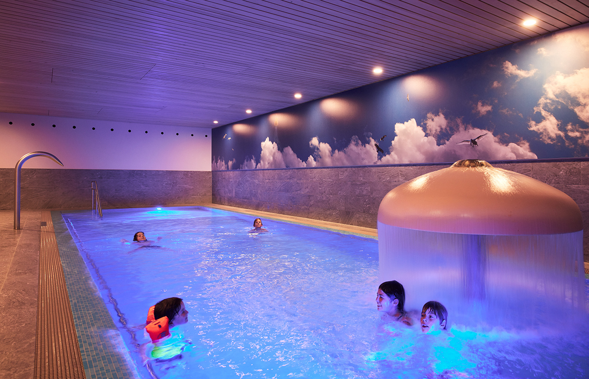 - Sauna world: Finnish sauna, organic panorama sauna, mountain-flower steam bath, mystic steam bath, multi-sensory showers, infrared relaxation room and mountain hay relaxation room
